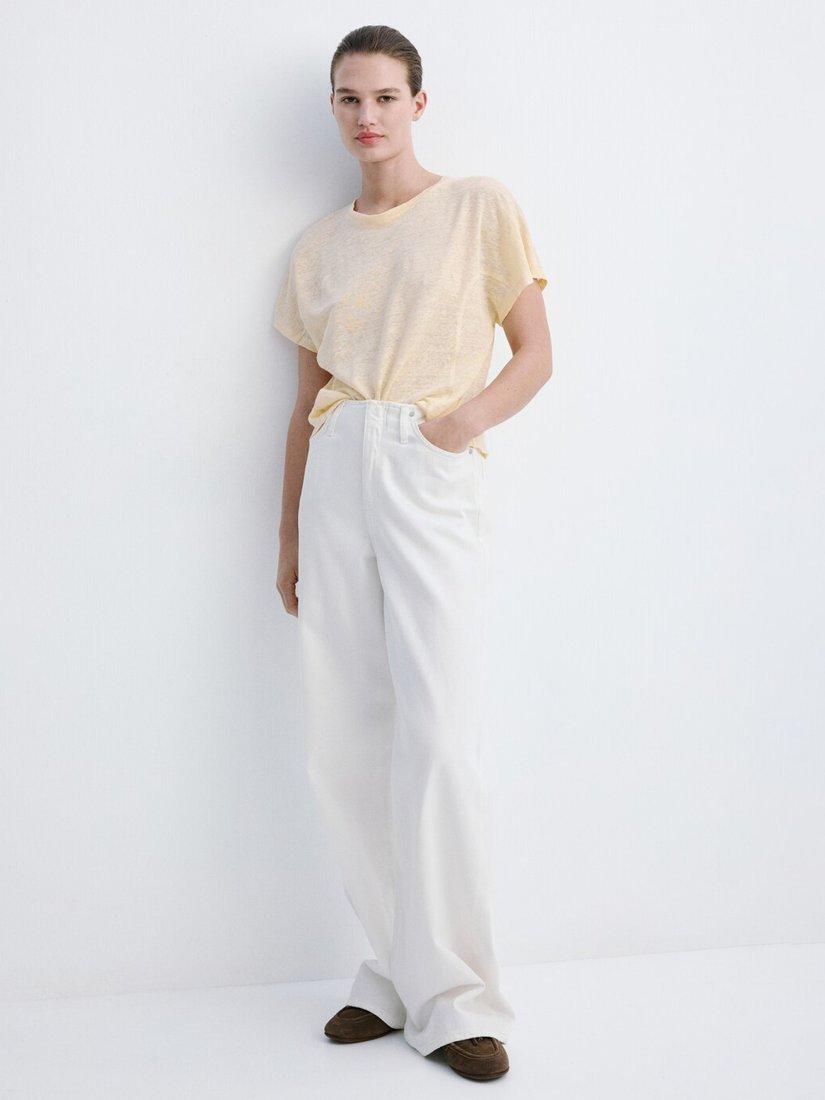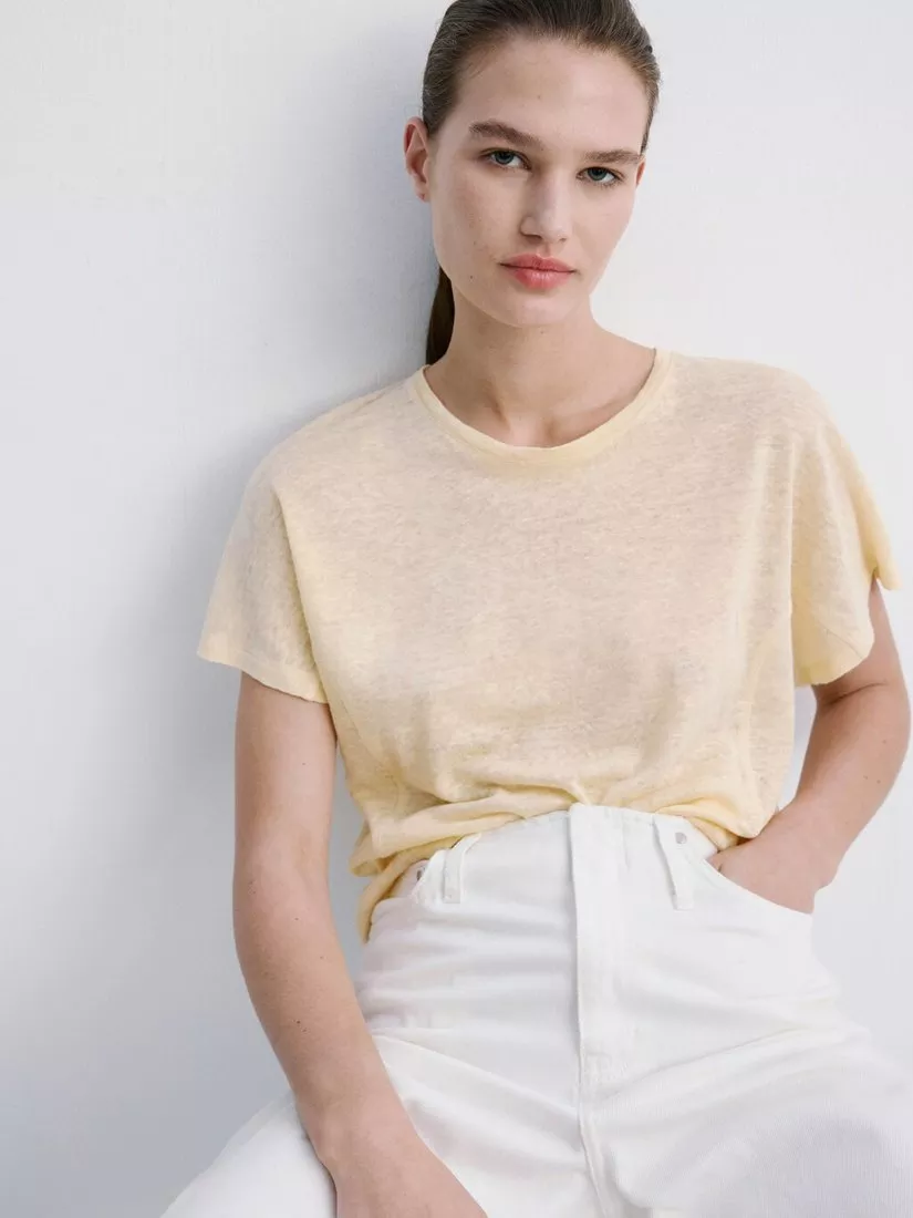 A T-shirt from Mango that's lightweight and breathable in pure linen. Featuring a round neck and short sleeves, it comes in a mix-and-match ready plain colour. Effortless style for daily dressing.