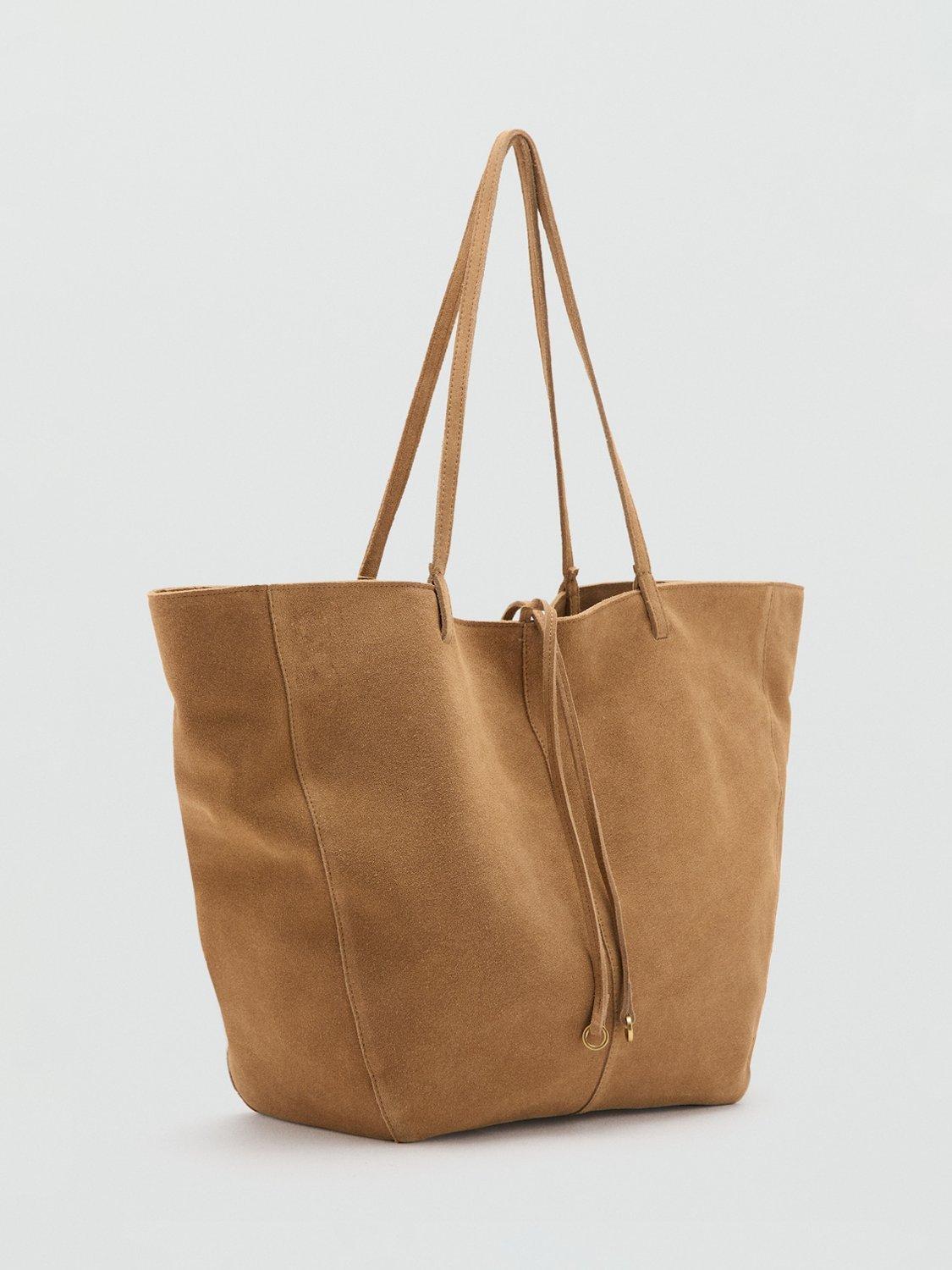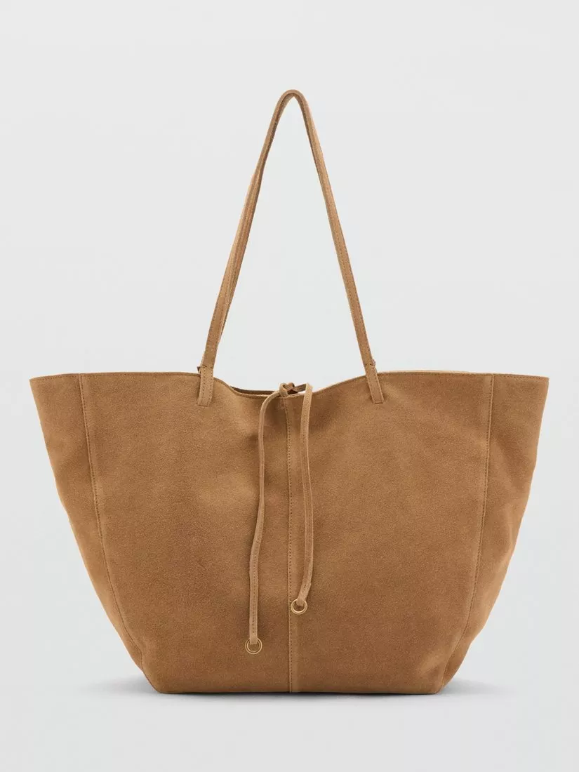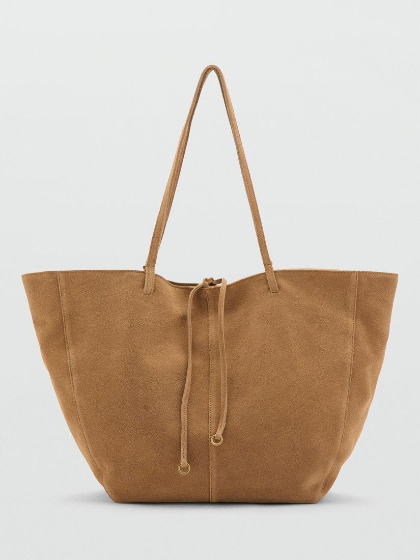 MangoPure Suede Shopper Tote Bag, Leather