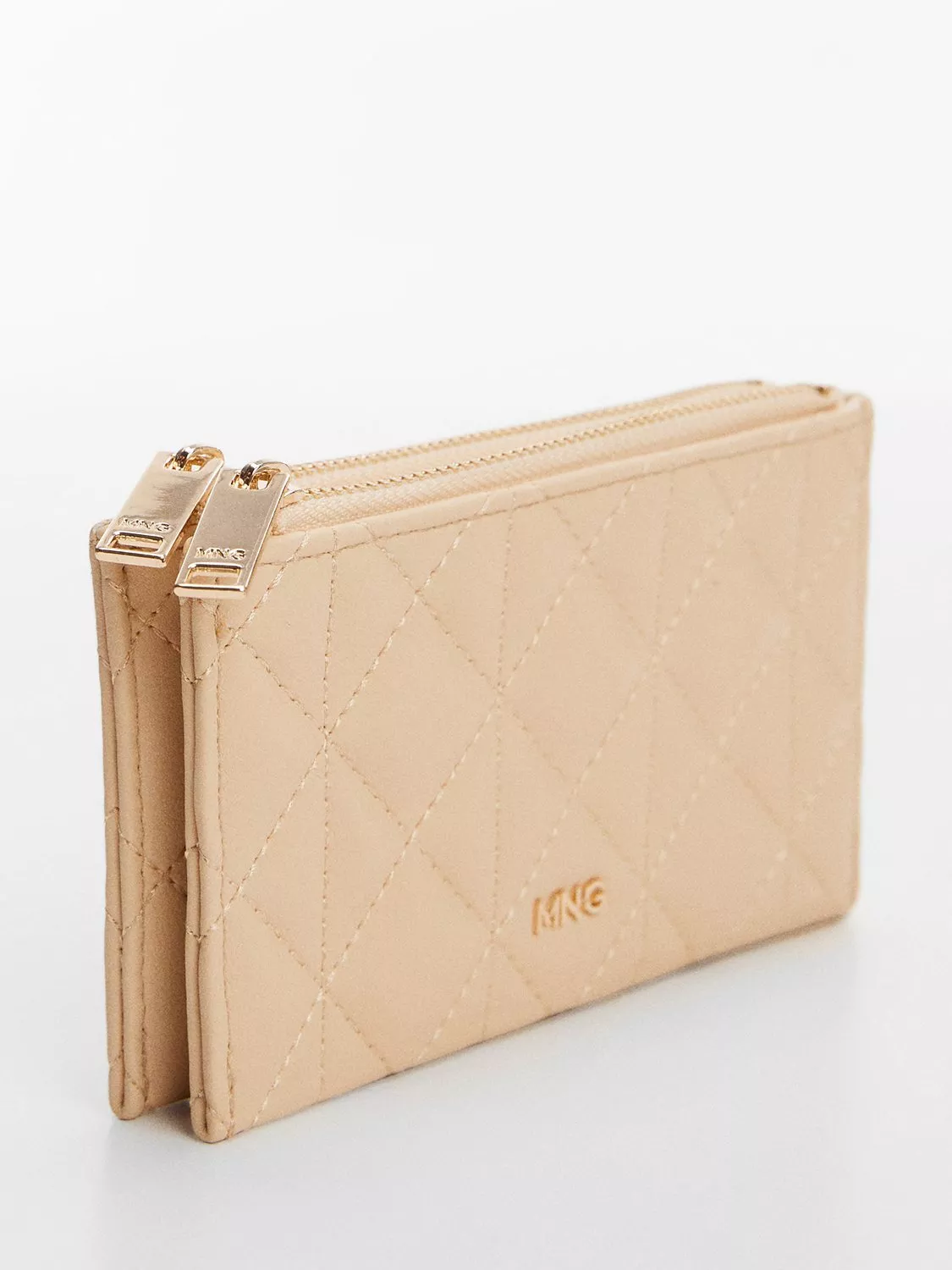 A quilted, dual compartment purse with two-way zip fastening, debossed logo, and inner lining.