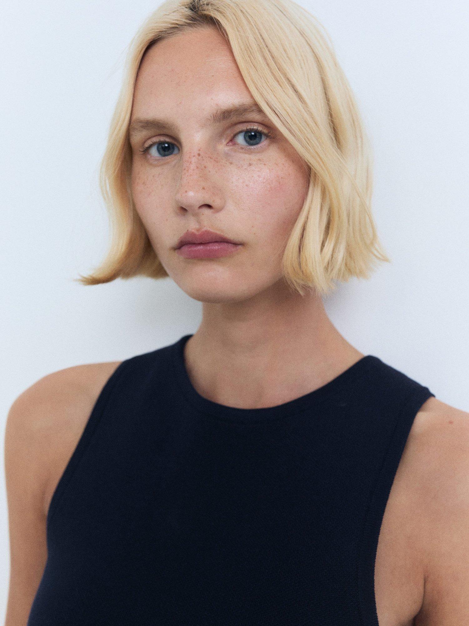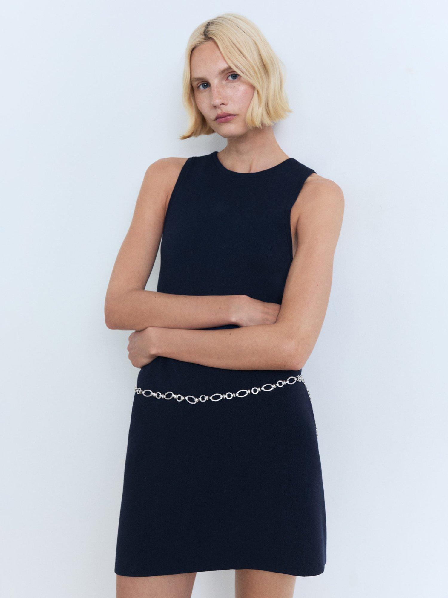 A masterclass in simplicity, this sleeveless thigh-grazing mini dress from Mango features a knitted composition and a hassle-free round neck.