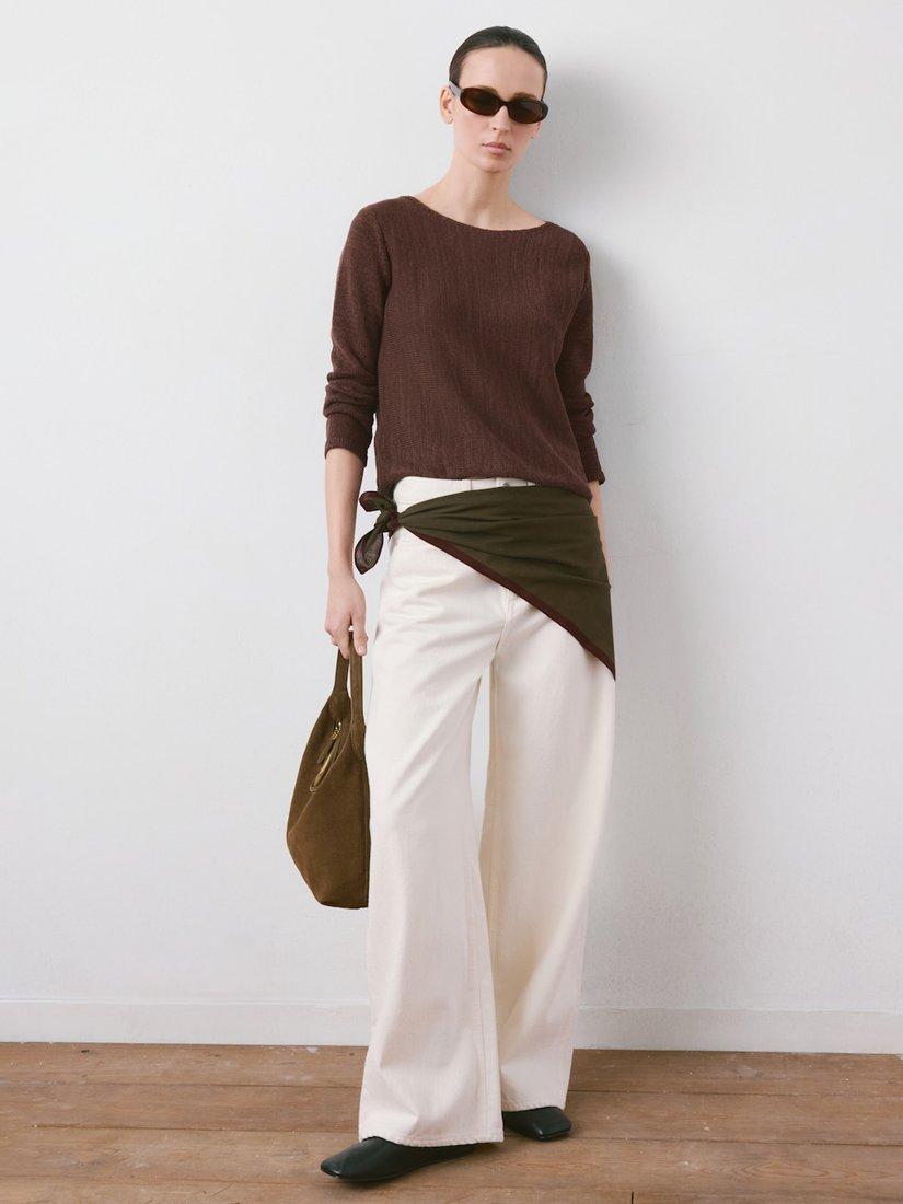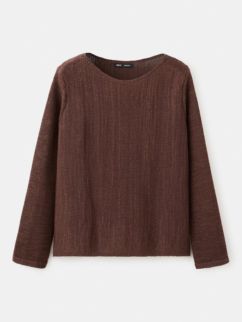 MangoRelaxed Round Neck Jumper, Chocolate