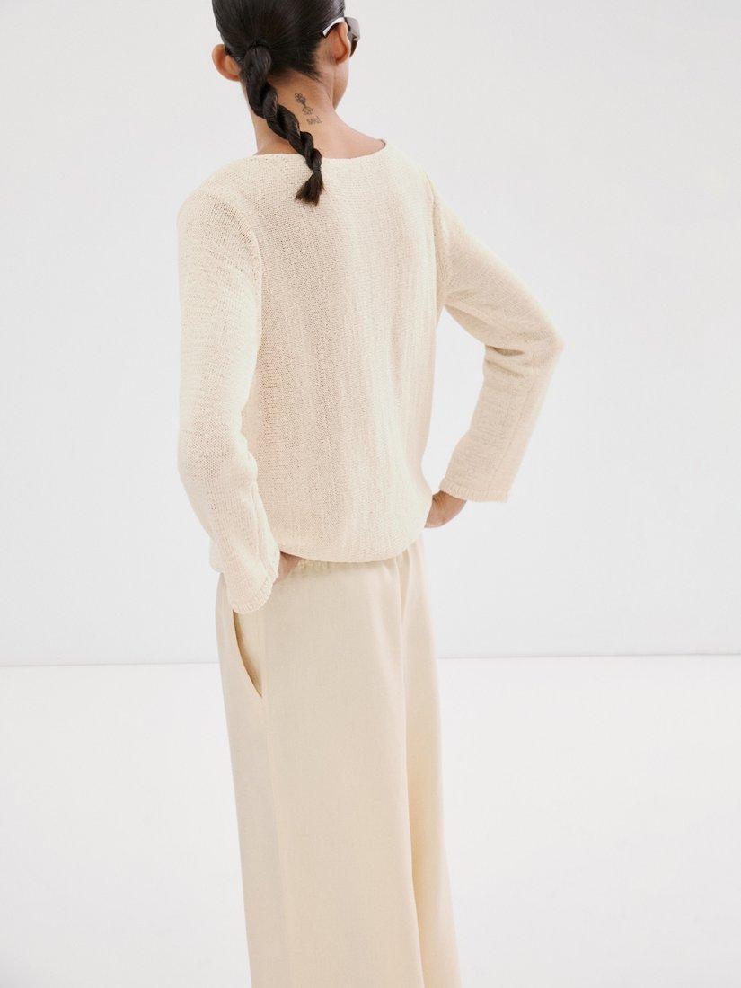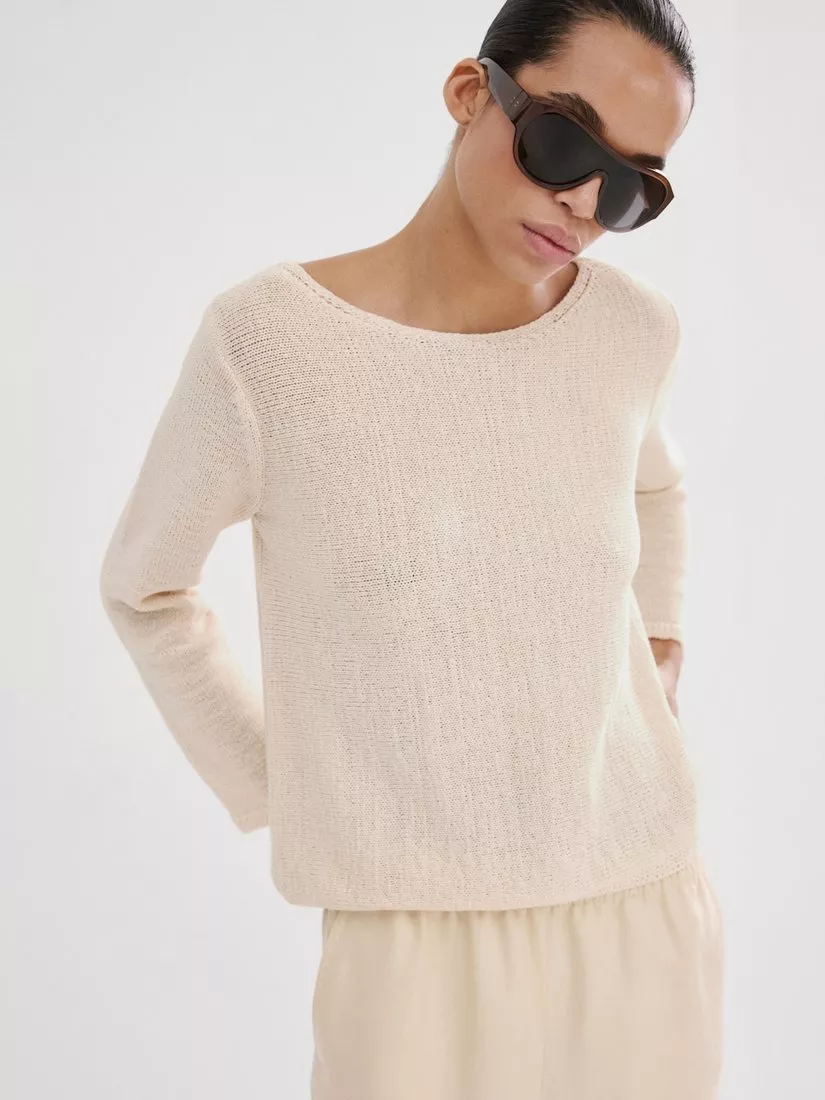 A supremely soft knit with a relaxed round neck and fluid drape, designed for calm sophistication and easy city to weekend wear.