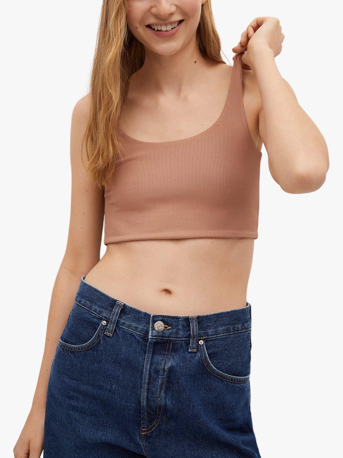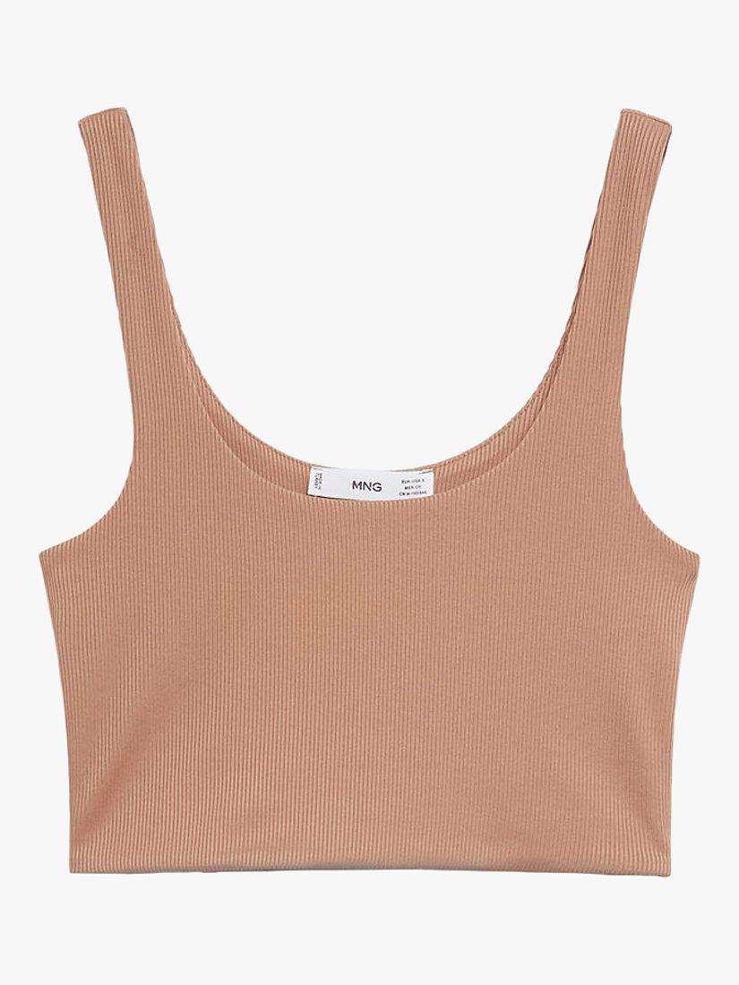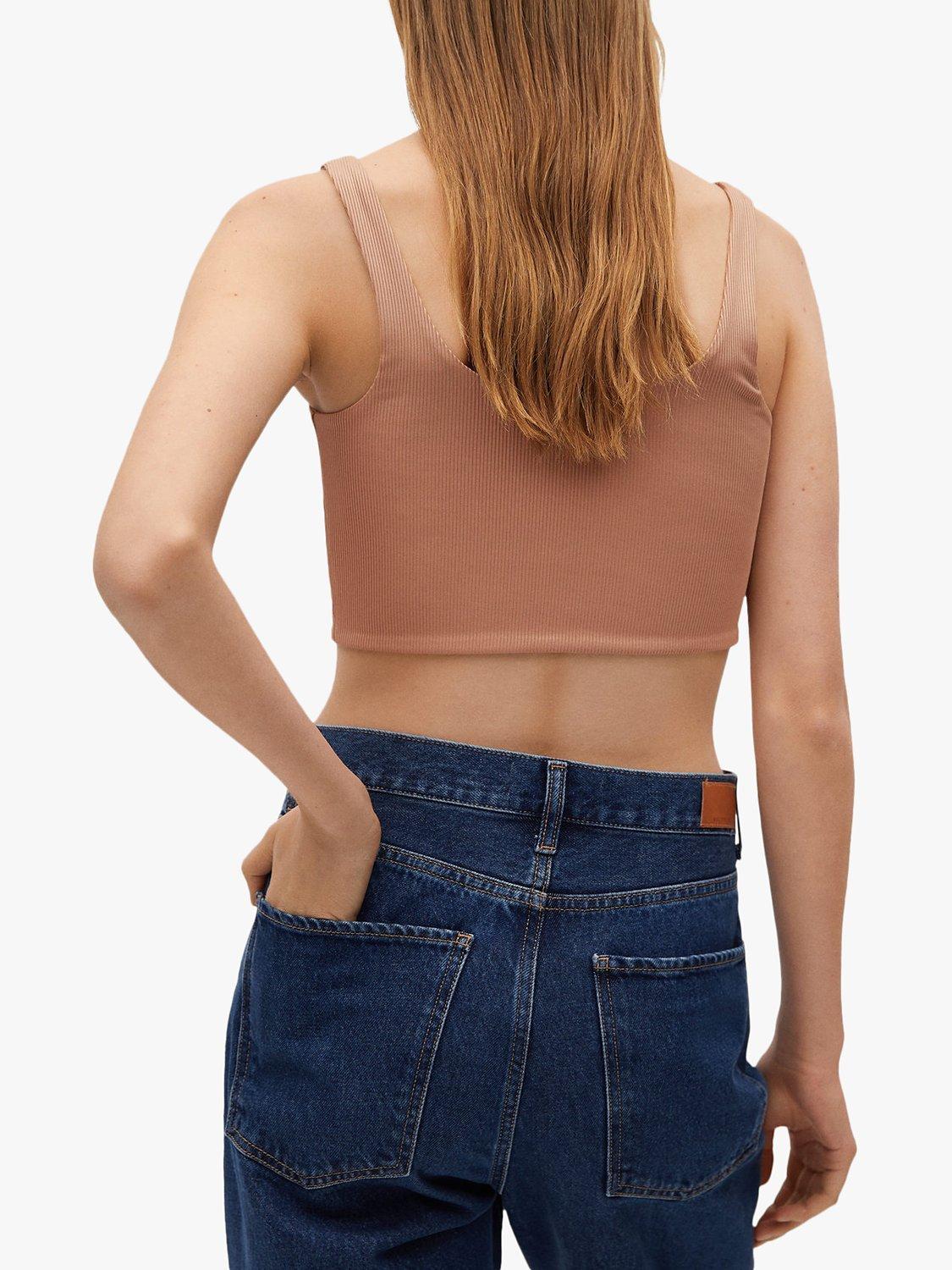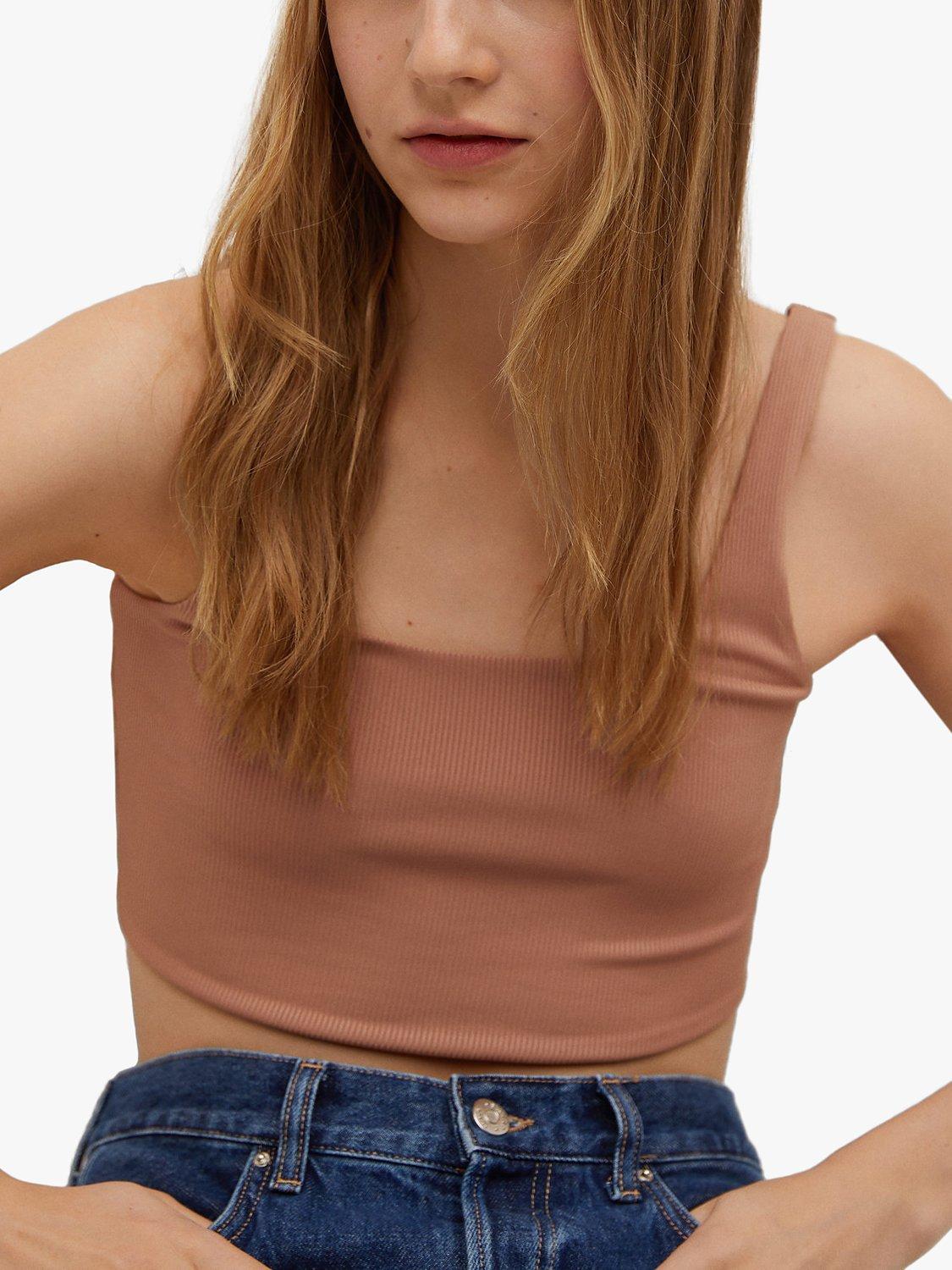 In a comfortable cropped style, this ribbed top from Mango is a versatile wardrobe staple. Made from a soft blend, it has a flattering scoop neckline that leads to delicate shoulder straps and is great for pairing with joggers on relaxed lounge days.