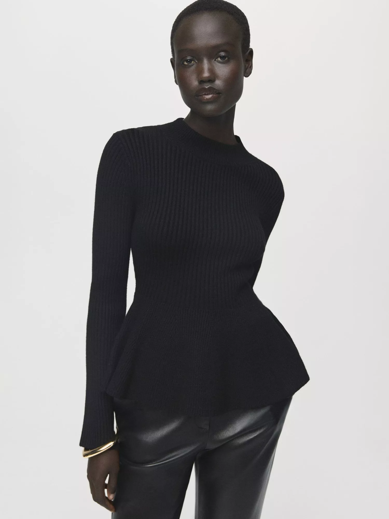 This peplum jumper features a slim fit, round neck, and long sleeves, offering comfort with a medium-weight viscose blend. Perfect for adding flair to your everyday style.