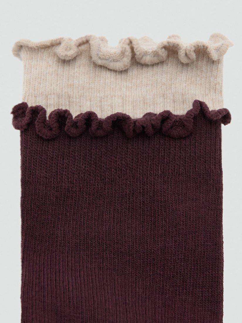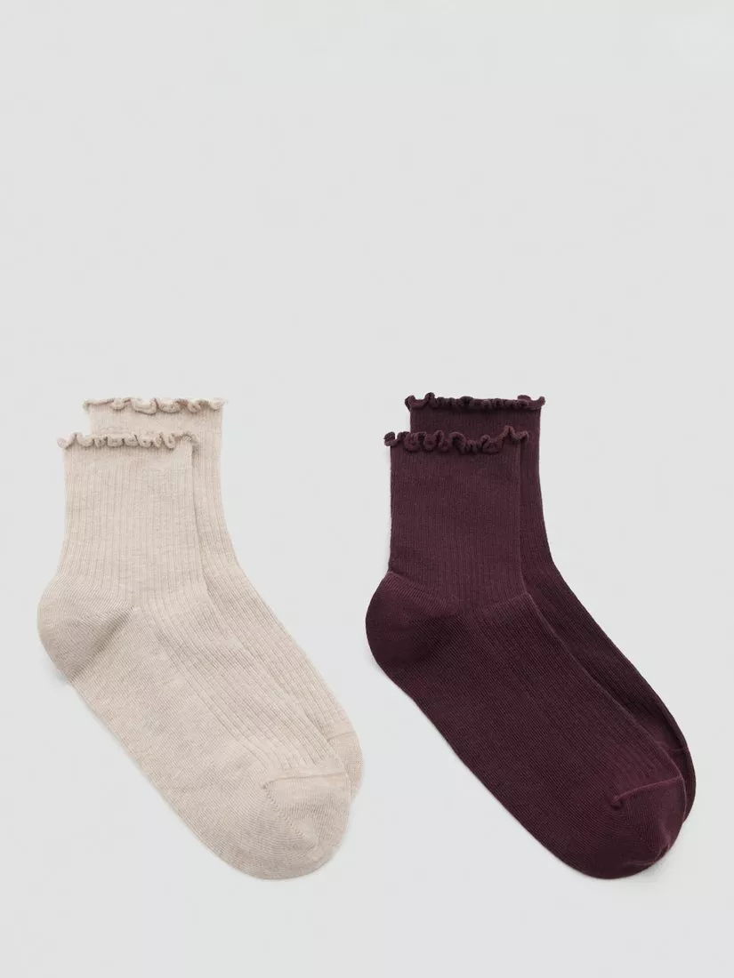 MangoRibbed Ruffle Socks, Pack of 2, Bordeaux