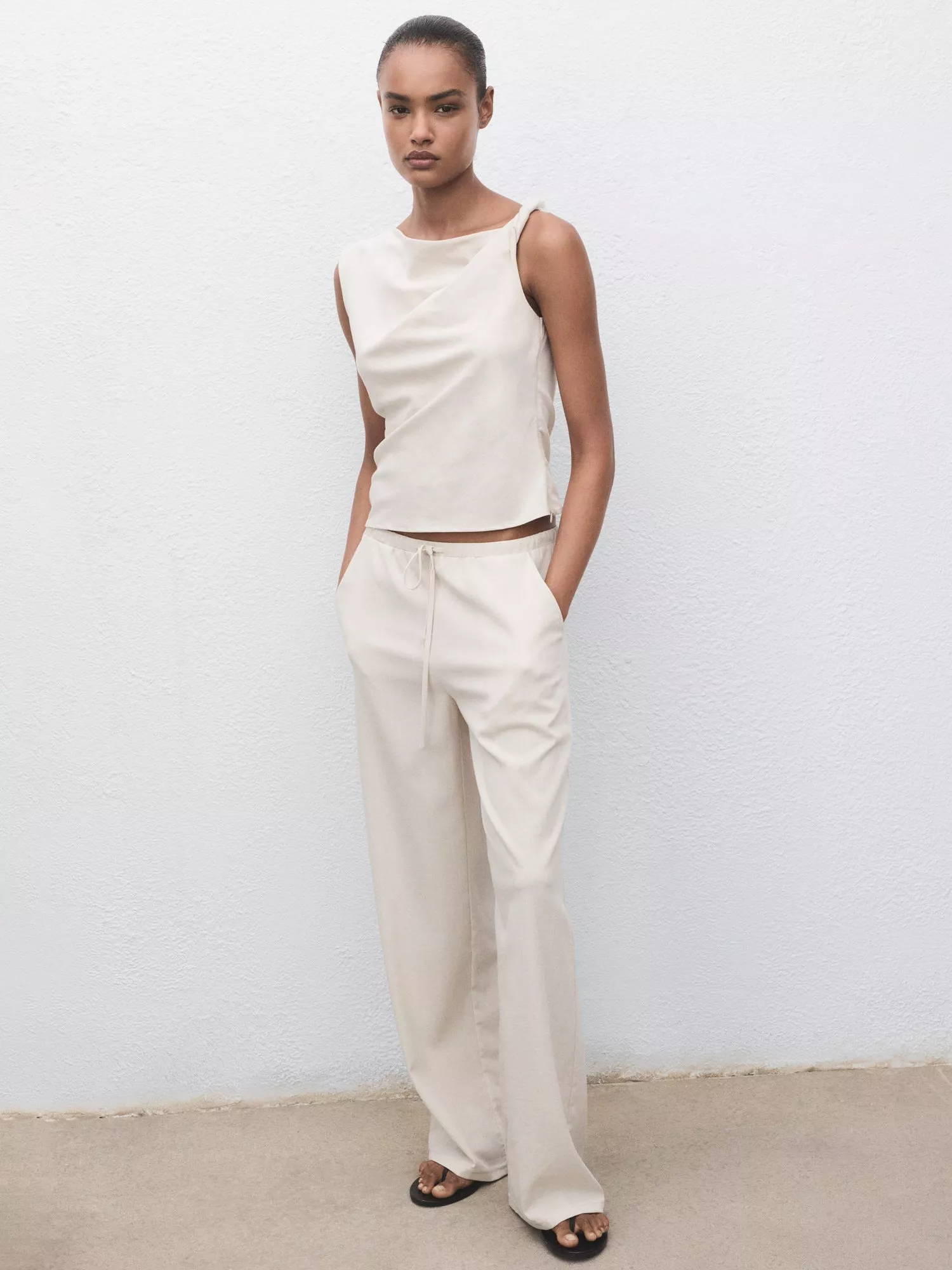 A twist strap cami by Mango, with a draped boat neckline and slim shape.