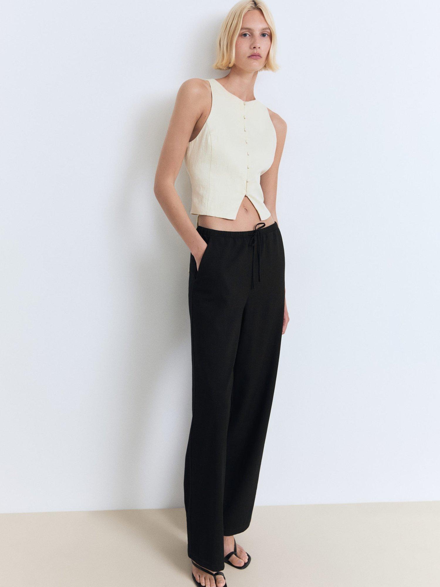 Trousers designed for your busy days, offering flexibility and comfort with a clever drawstring fastening. The tailored cut gives you a sharp look, while the soft fabric blend moves with you.