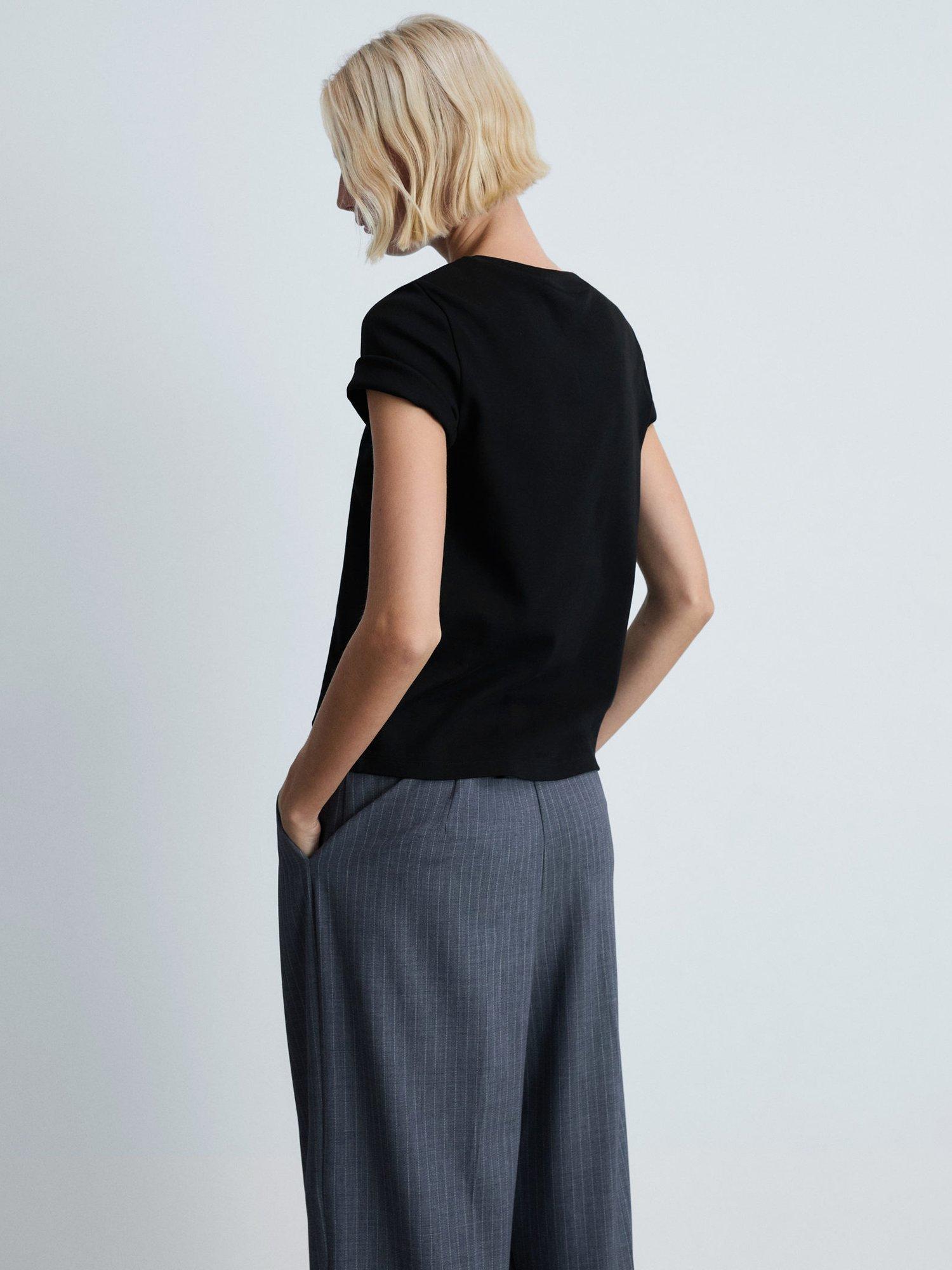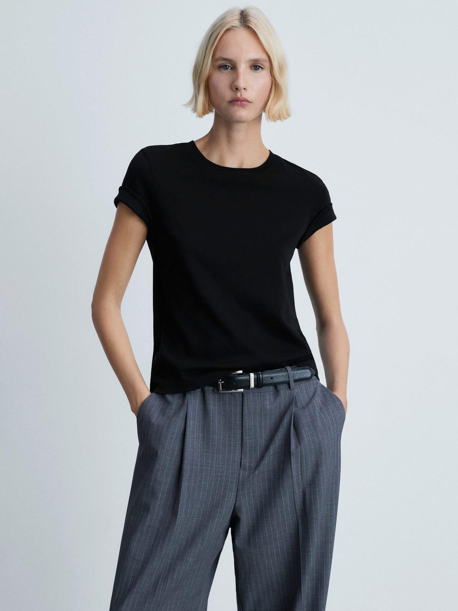 A solo piece or layering staple, this t-shirt by Mango is plain for easy mixing and matching. Simply cut with a round neck and short sleeves, it's made from soft and breathable cotton and slips on well with tonal denim ready for the summer.
