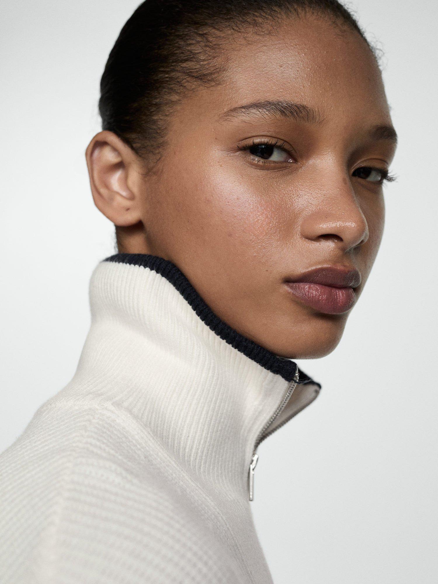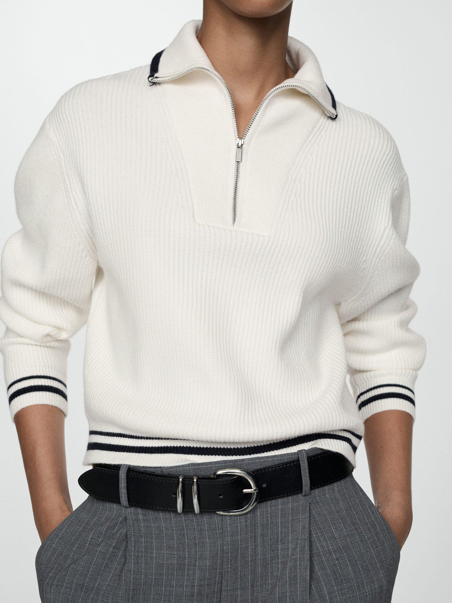 A zip jumper by Mango designed with classic stripes throughout and made from a longlasting cosy fabric.