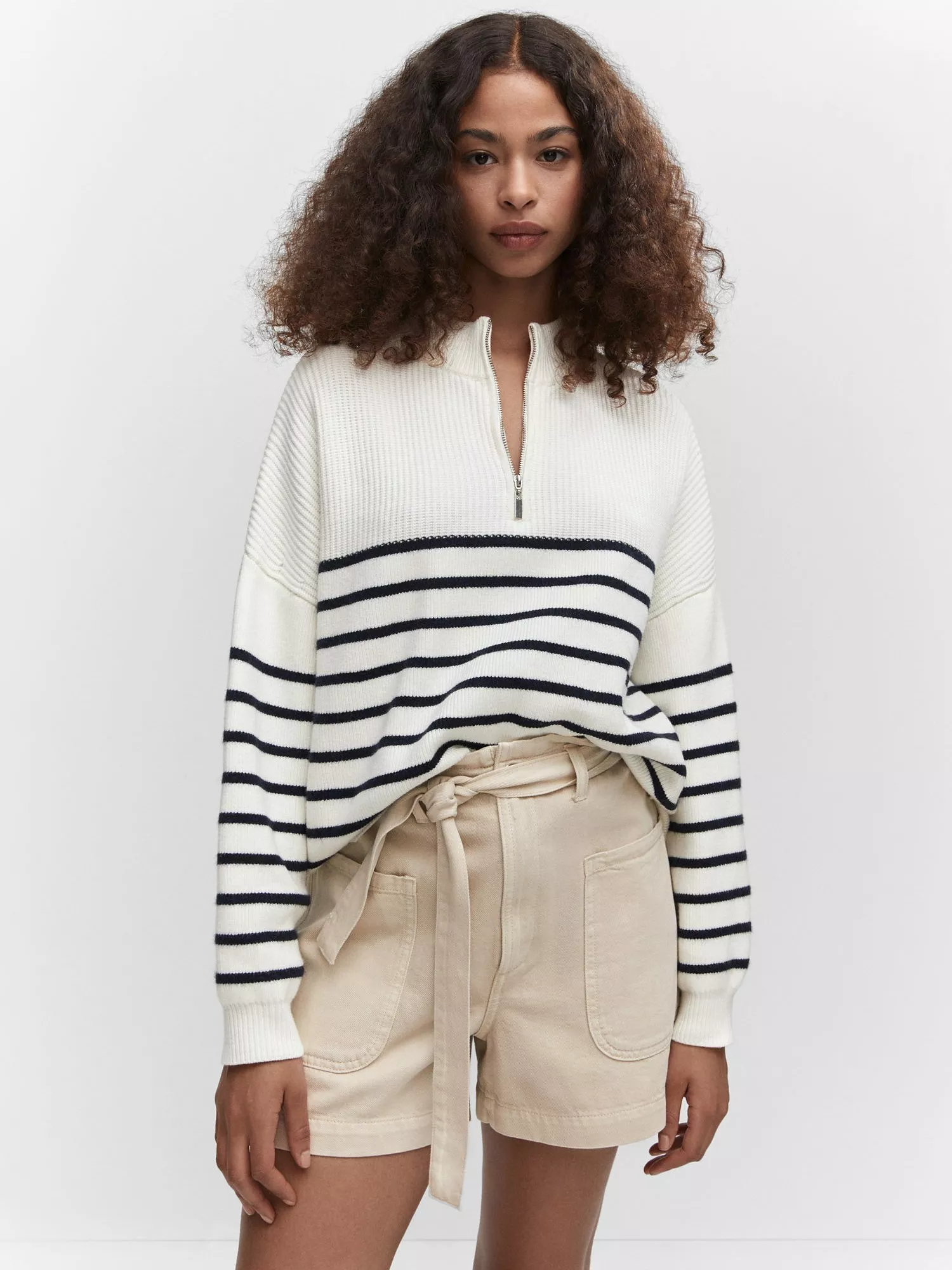 Zipping up at the neck, this sweatshirt by Mango is striped for an eye-catching finish and is made from a light blended fabric for a smooth handle.