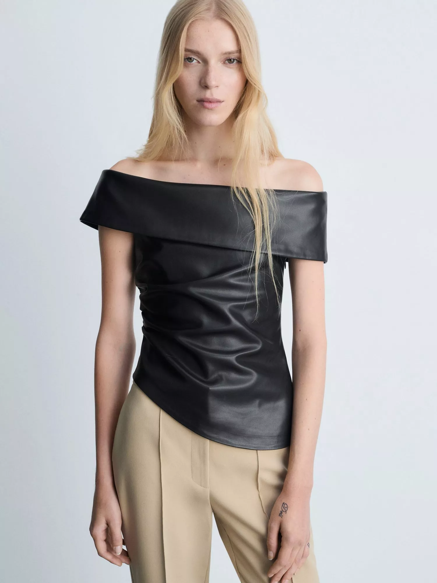 Made in smooth faux leather, this off shoulder top from Mango is sure to be a standout. Plain for easy mixing and matching, it'll surely become your go-to when there's a party to attend.