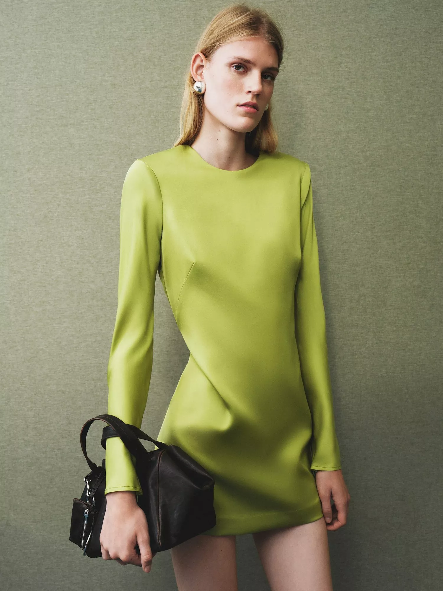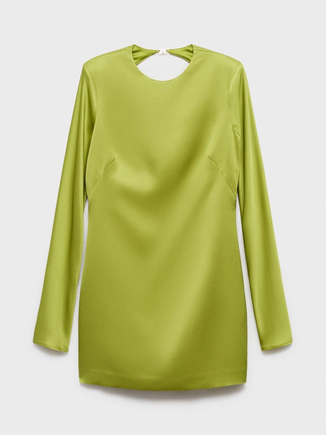 This bright mini shift dress catches the light with its satin finish and open-back detail. Its effortless shape and playful touches let you move freely, while the long sleeves and soft viscose fabric keep you comfortable and ready for any party.