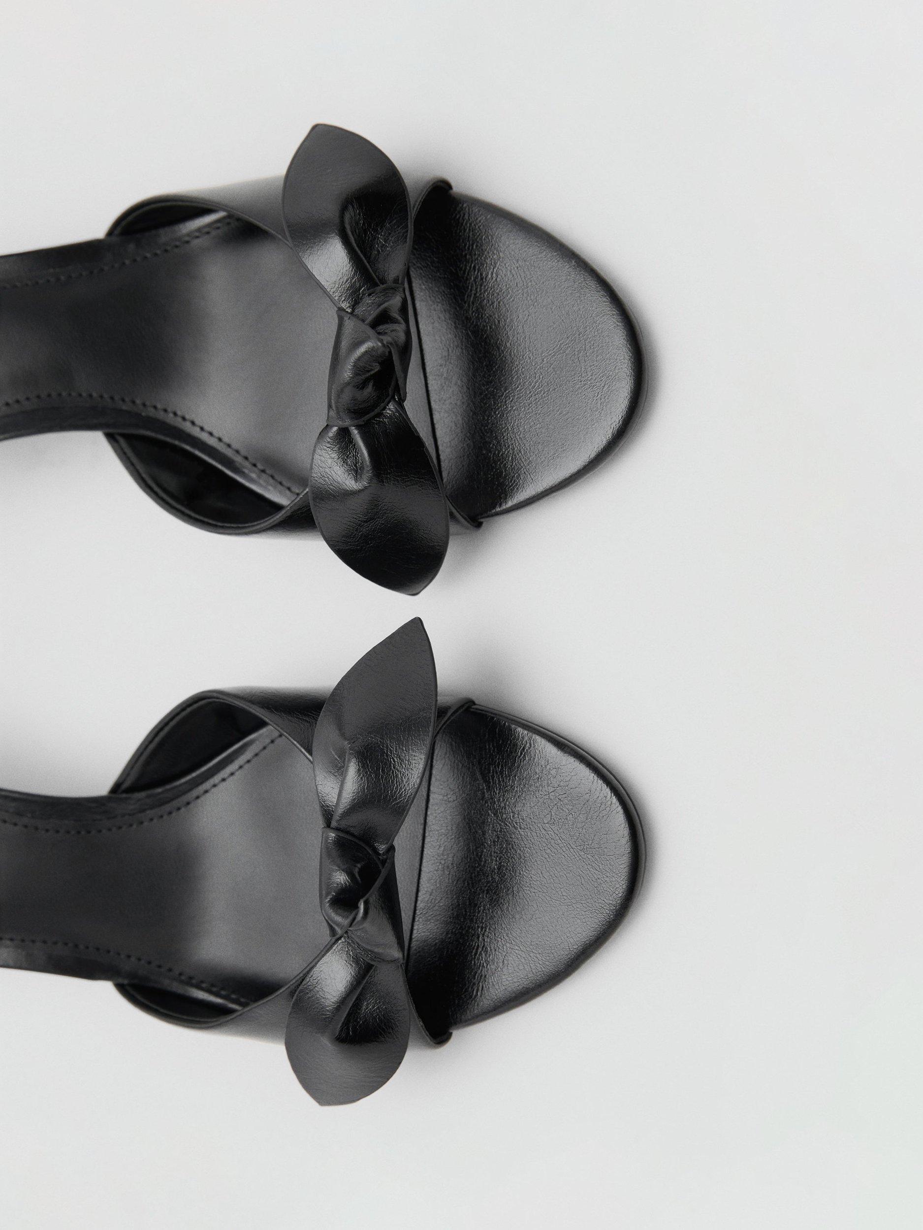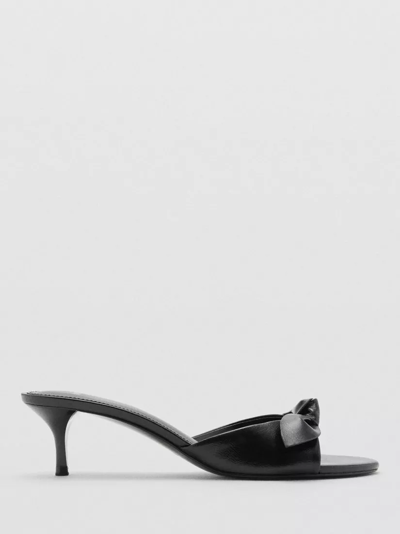 Kitten heel sandals with a comfortable inner lining and bow detail on the open-toe front.