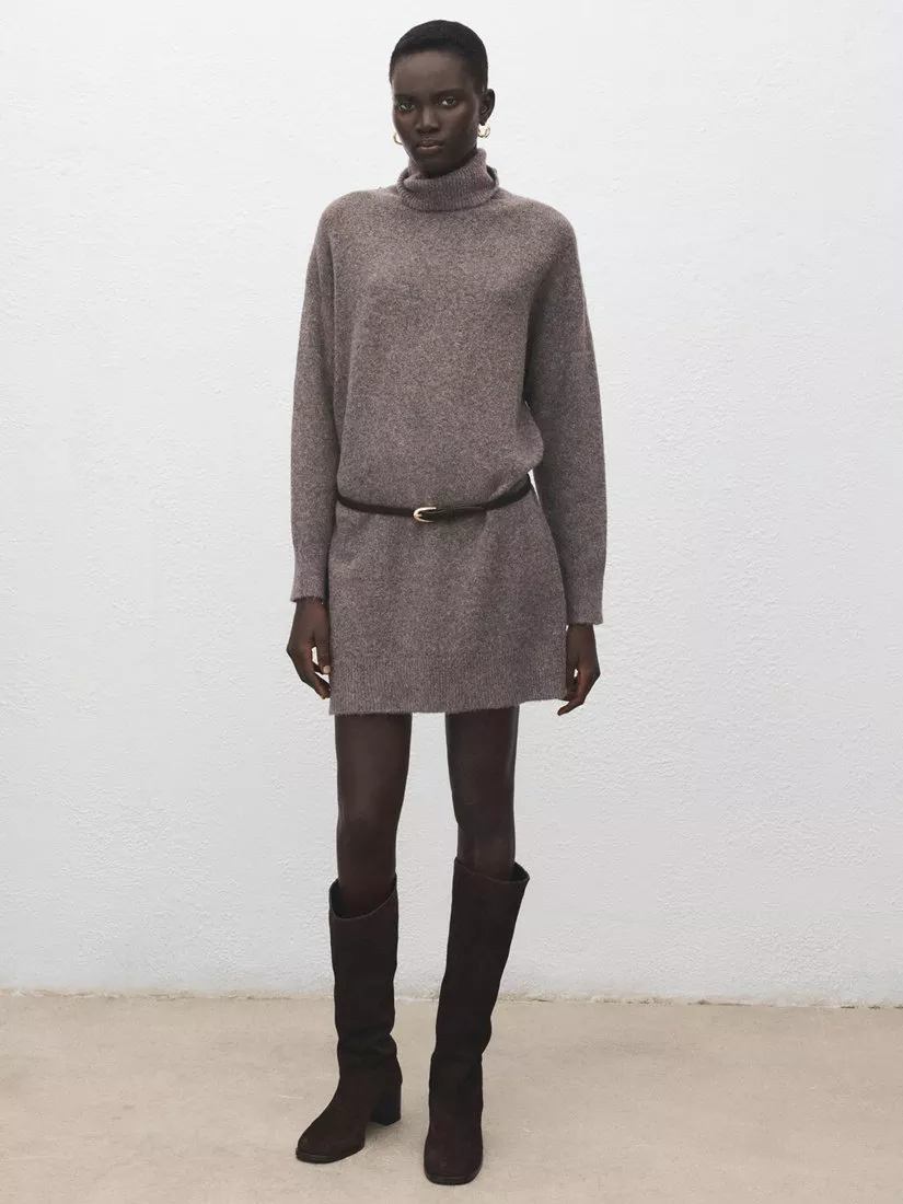 A mini roll neck jumper dress, perfect for day adventures. Its sleek fit moves with you, making it easy to style and comfortable for all your plans.