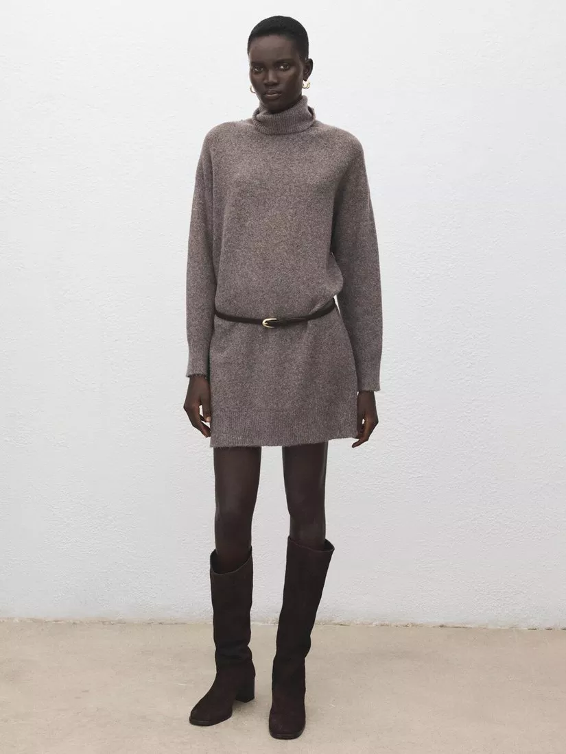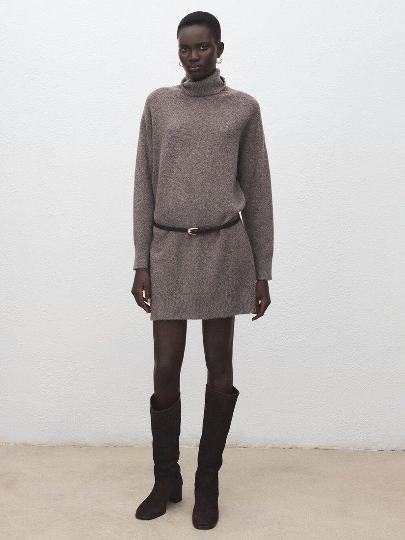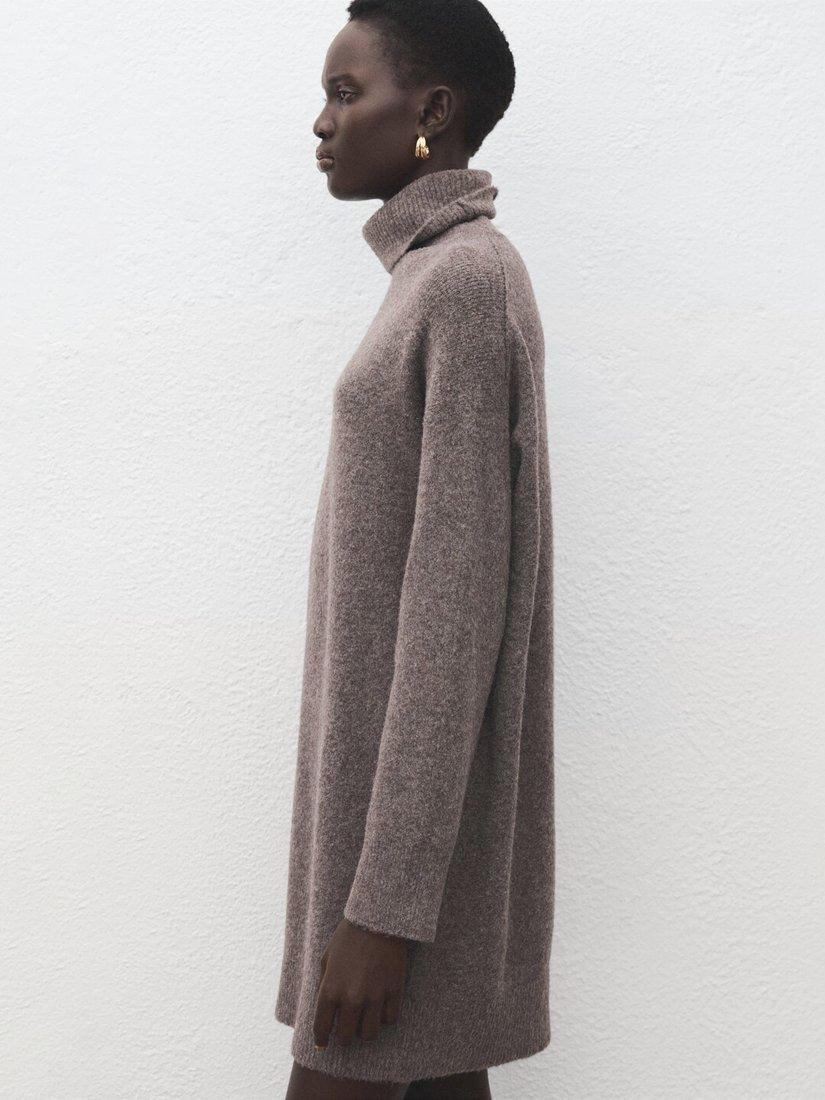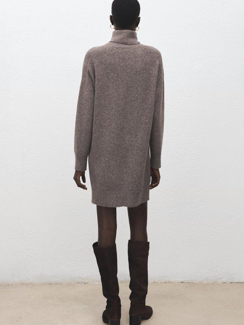 MangoRoll Neck Jumper Mini Dress, Taupe