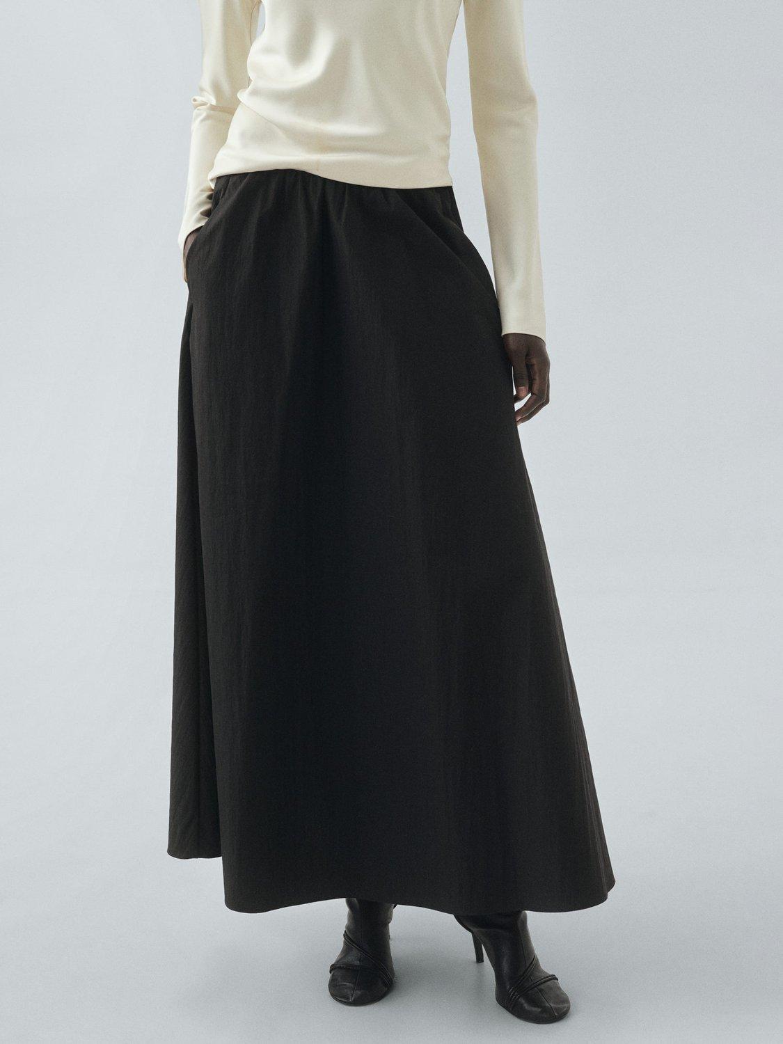 Sweeping to mid-length, slip into this skirt by Mango. Defined by a soft flare through the hem, it's crafted from a cotton blend with a low-mid rise. Secured by a zip closure.