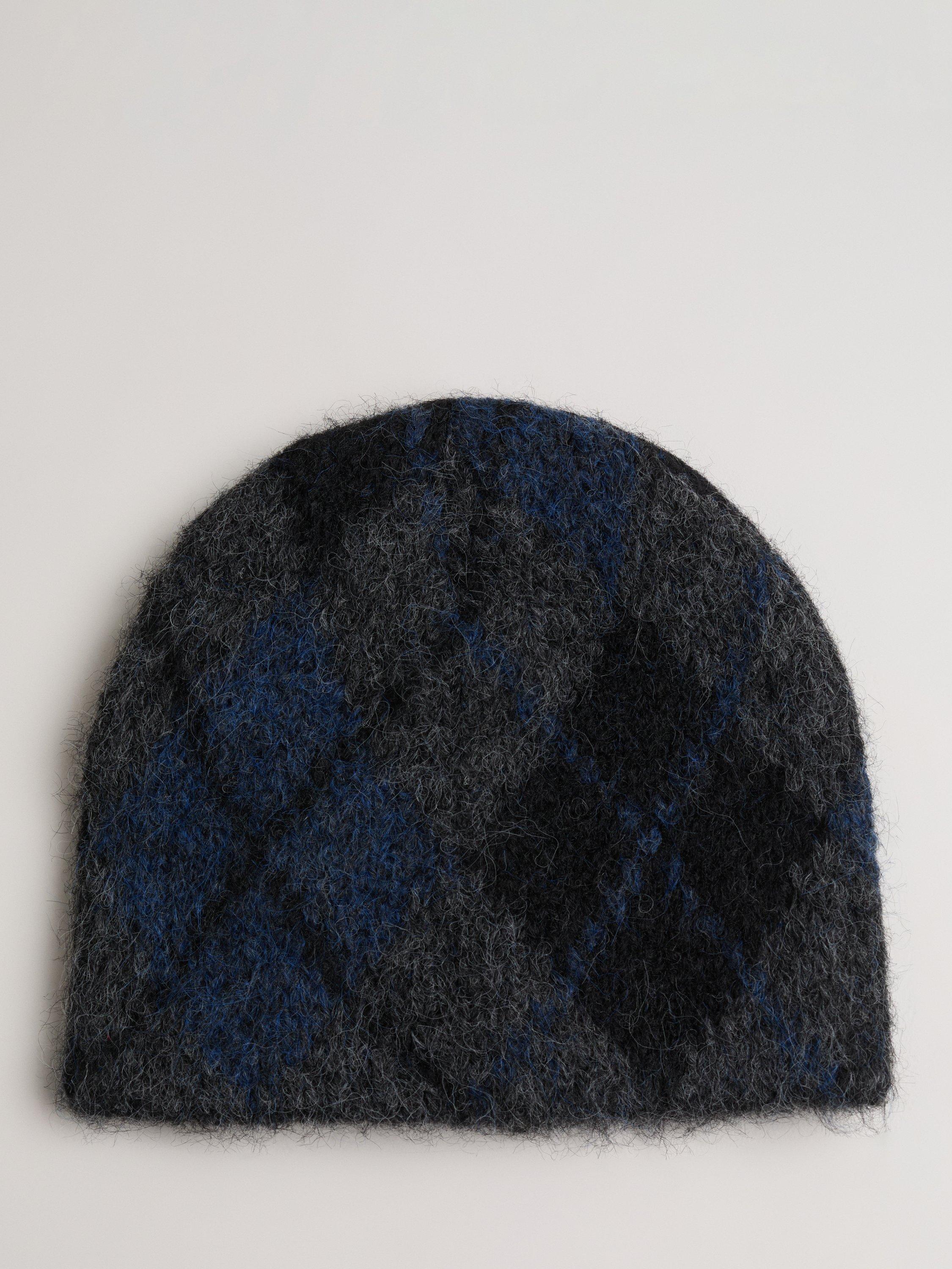 Crafted from a fluffy knit with a hint of wool, this cosy hat features a classic Argyle print.