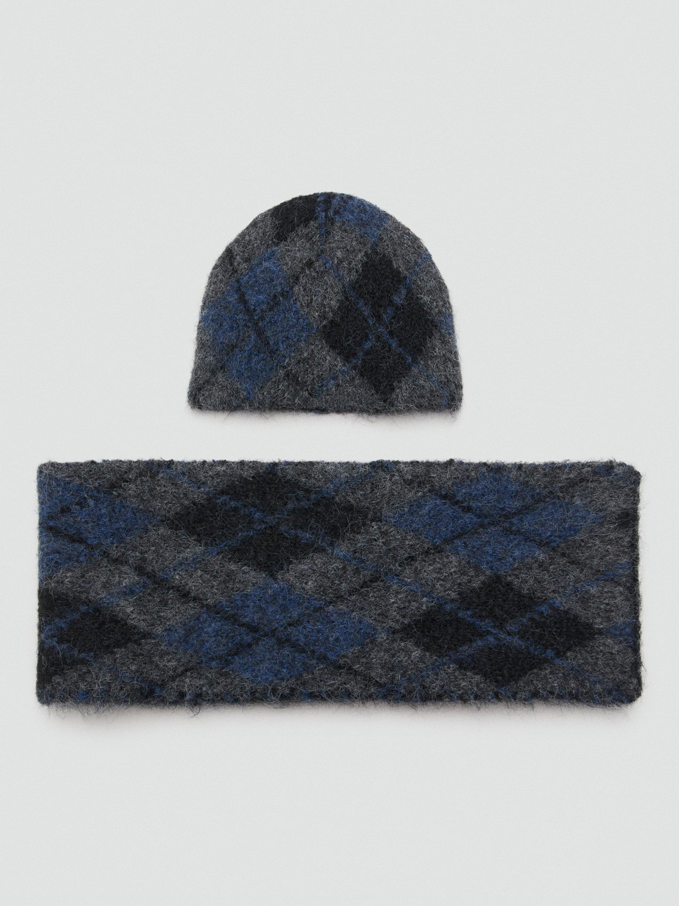 MangoRombos Knitted Argyle Hat, Grey/Blue