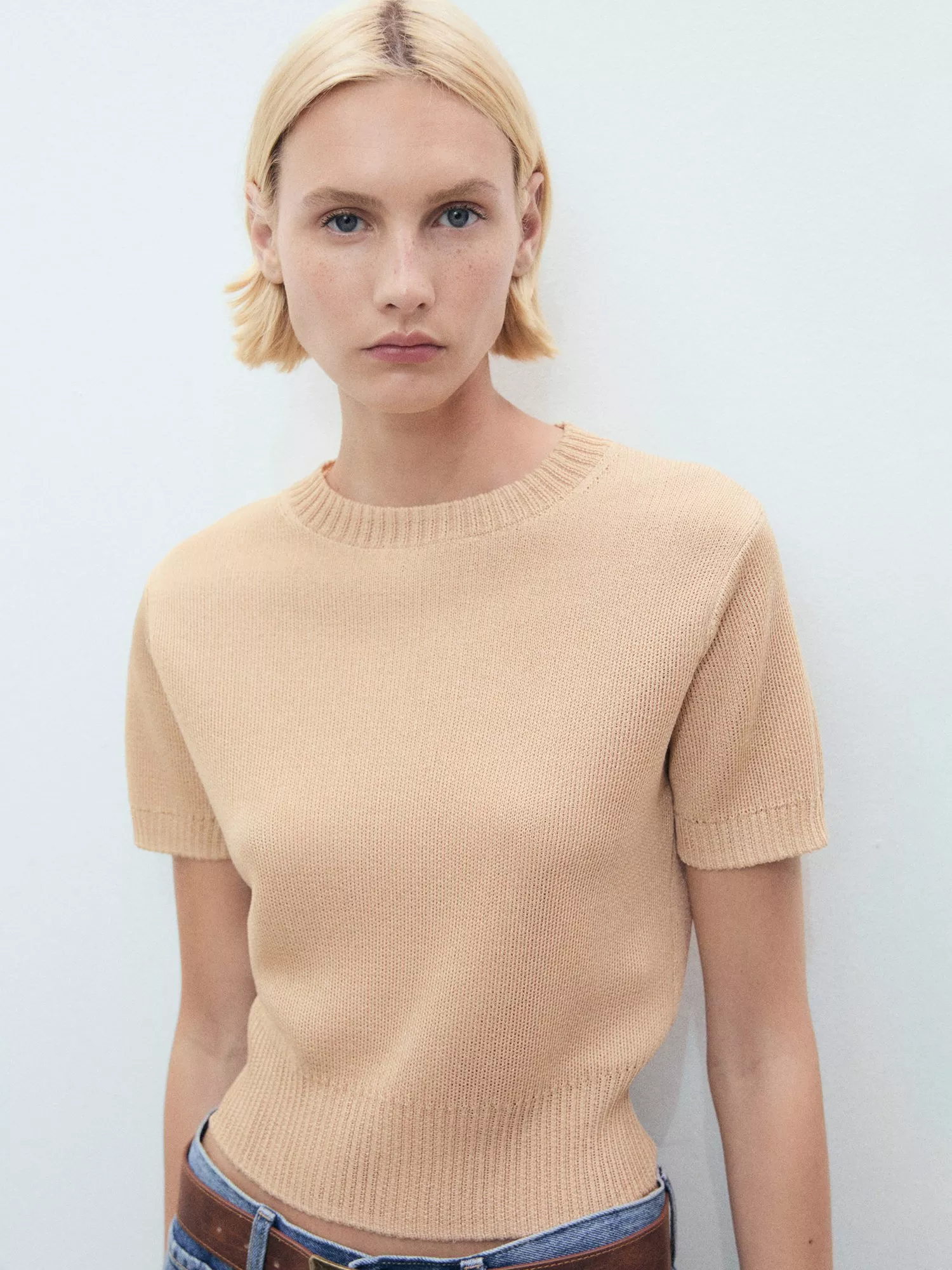 Mango’s jumper combines streamlined design with a fine viscose blend, inviting you to express your style with confidence. Its short sleeves and crew neck create a relaxed silhouette, offering a fresh perspective for any occasion.