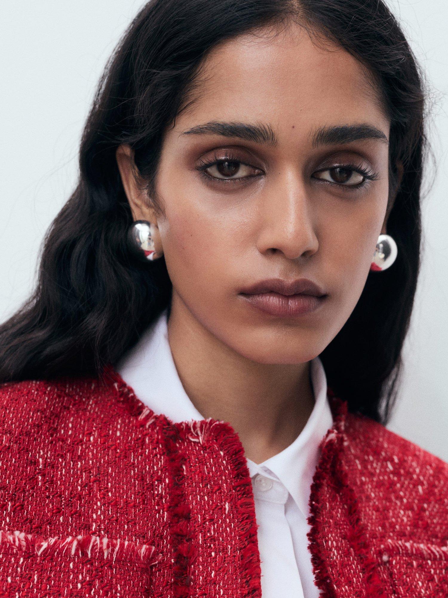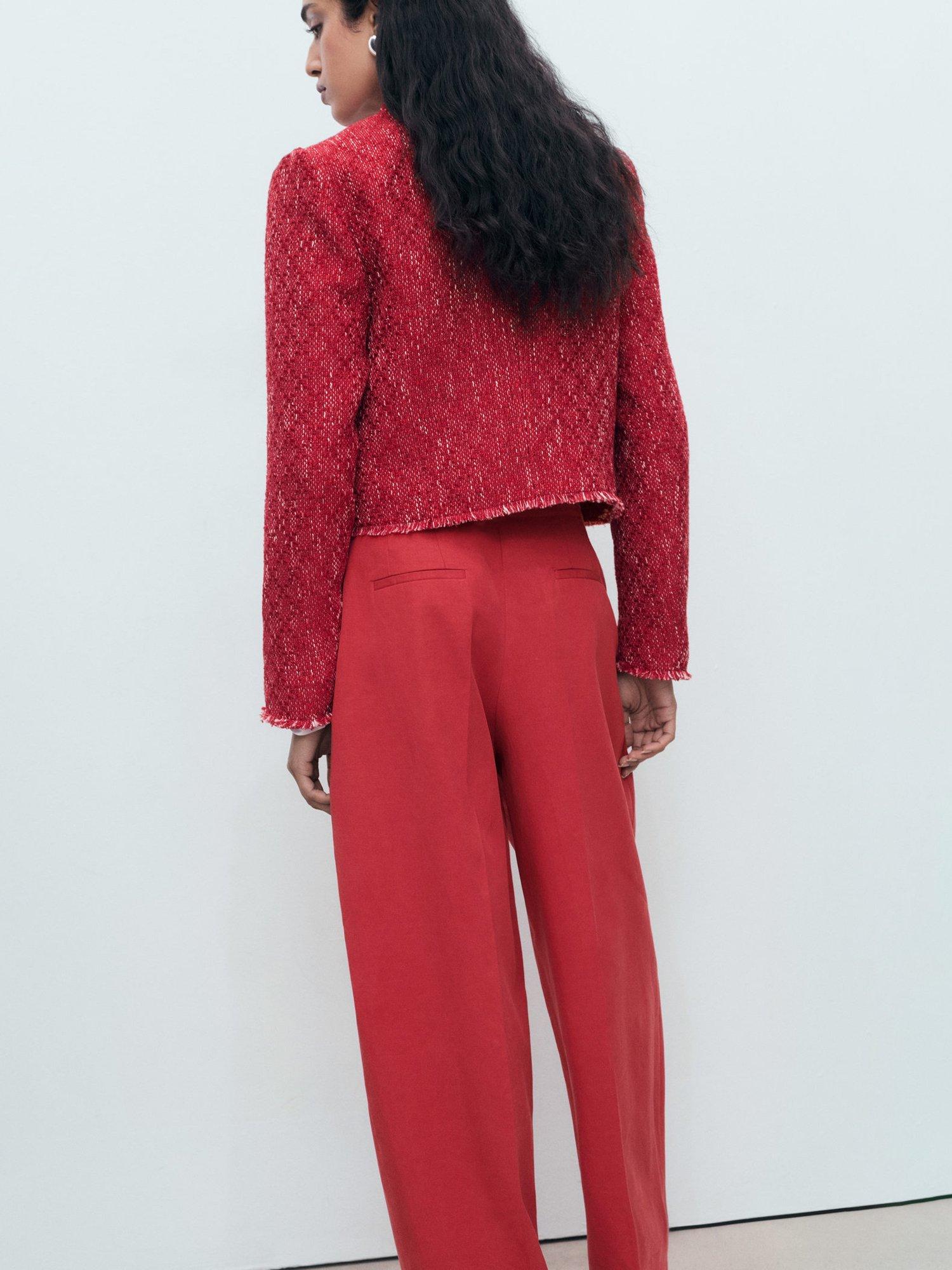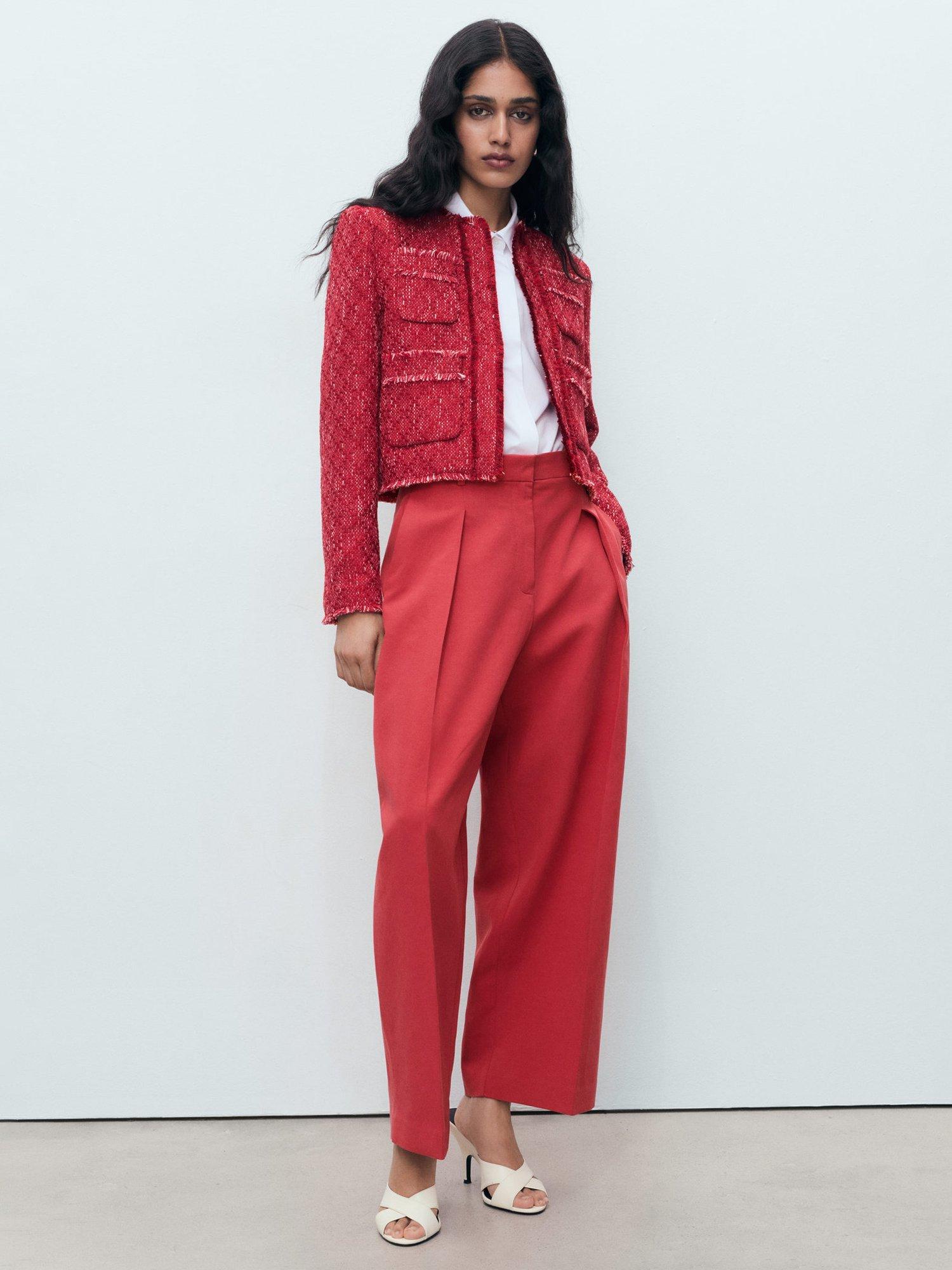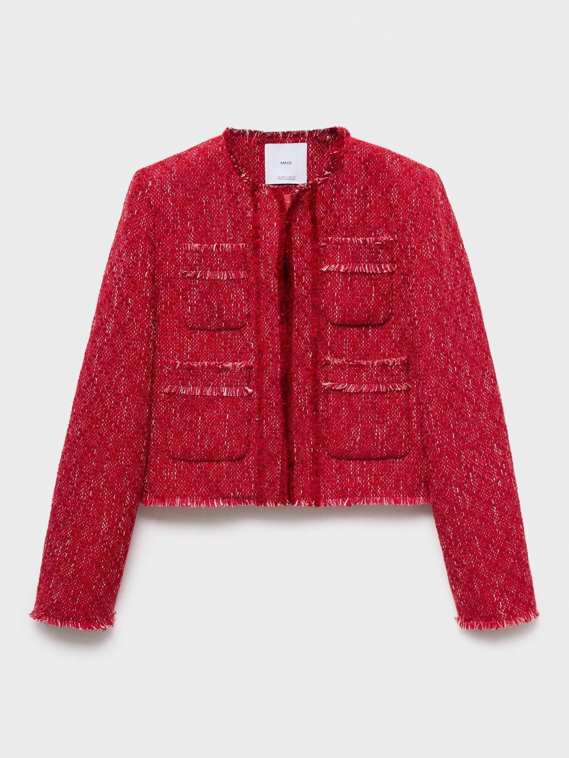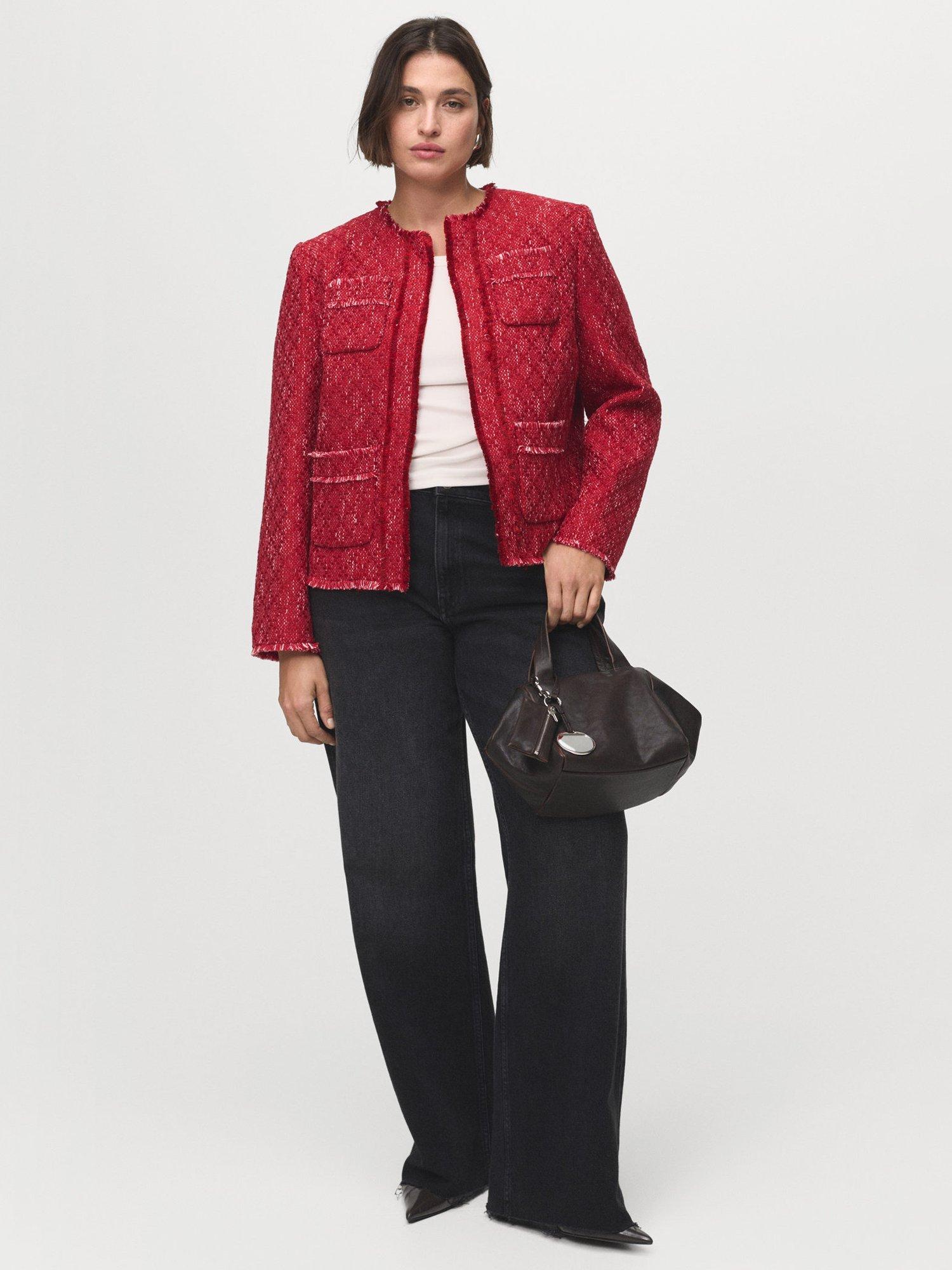 This tweed jacket features a textured geometric pattern. Its regular fit and round neck make it easy to layer, keeping you comfortable.