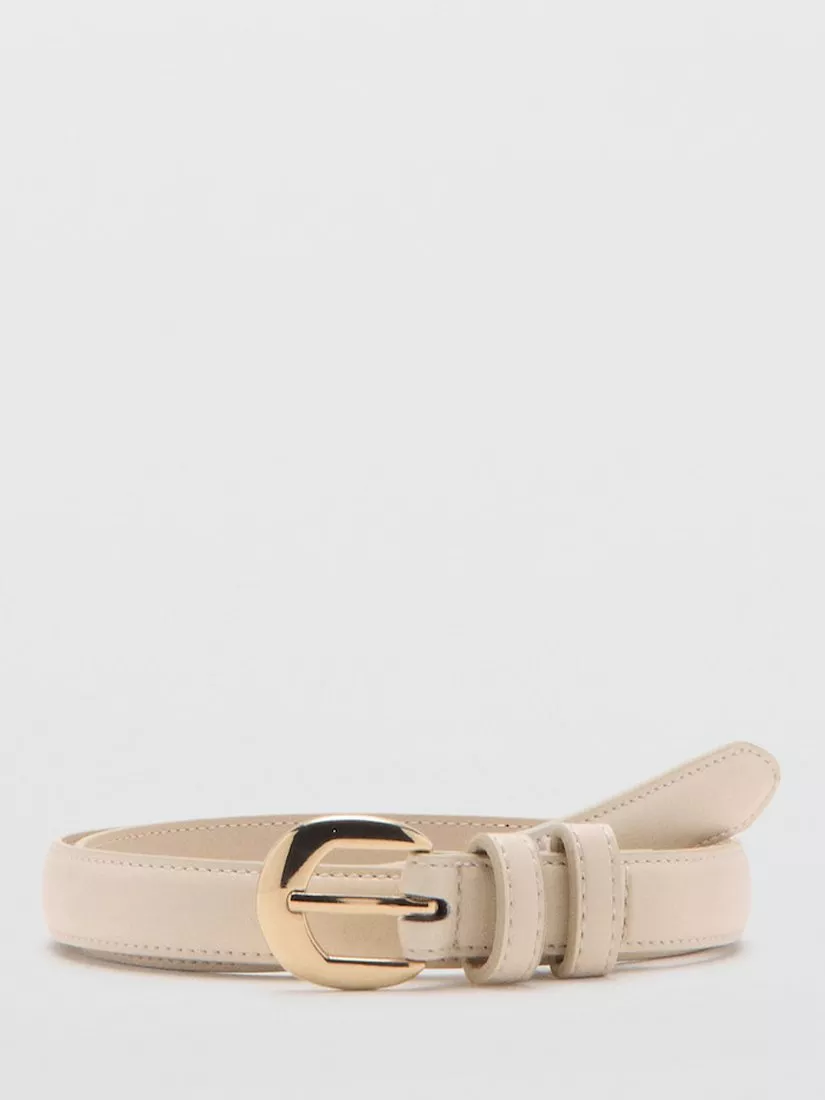 MangoRound Buckle Skinny Belt, Raw