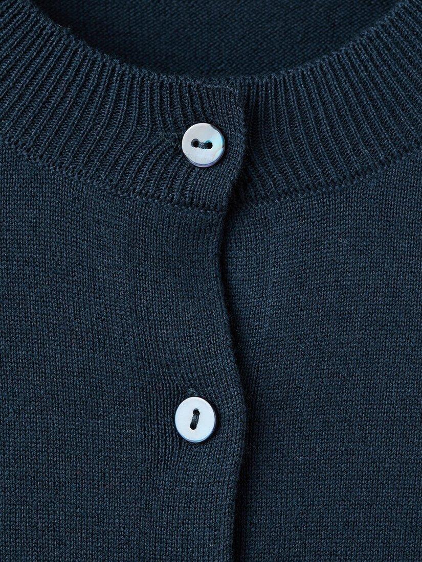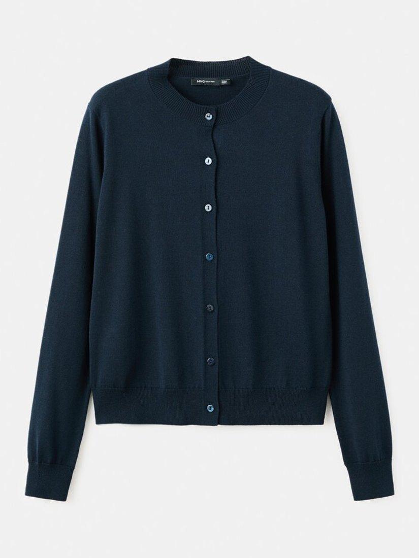 A fine wool blend cardigan. Its button fastening and round neck offer a classic fit, while the plain knit keeps your style sharp. Layer it to add warmth and texture wherever you go.