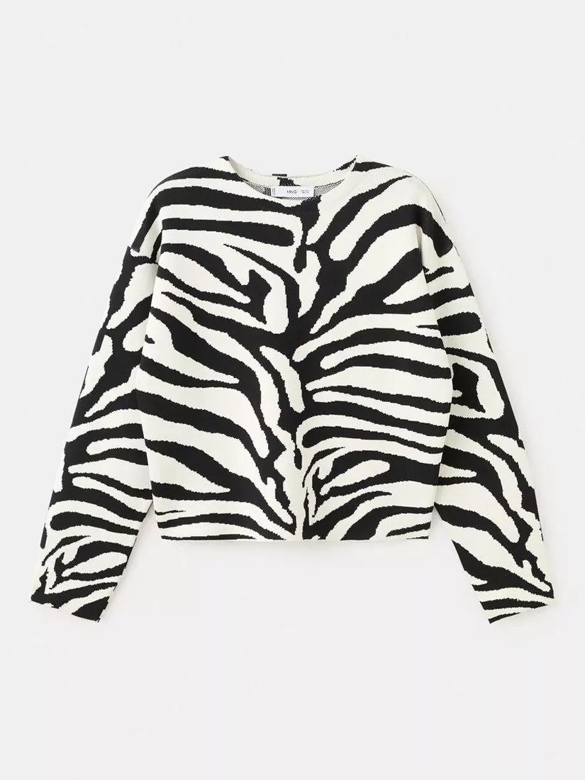 Formed using a warming fabric blend, this round neck jumper from Mango catches your eye with a zebra print pattern.