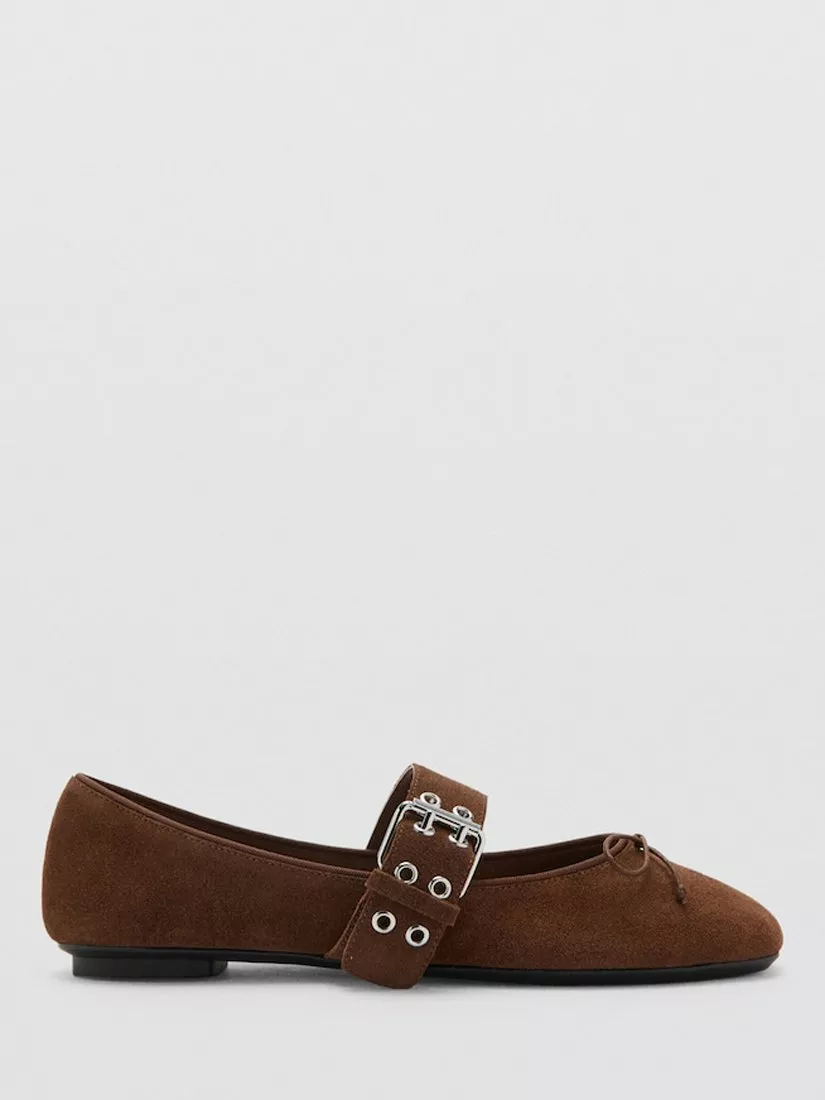 Pumps by Mango finished in supple leather, featuring a classic round toe and buckle fastening for everyday versatility. A flat sole delivers comfort for all-day wear, making them a reliable option for spring and autumn transitions.