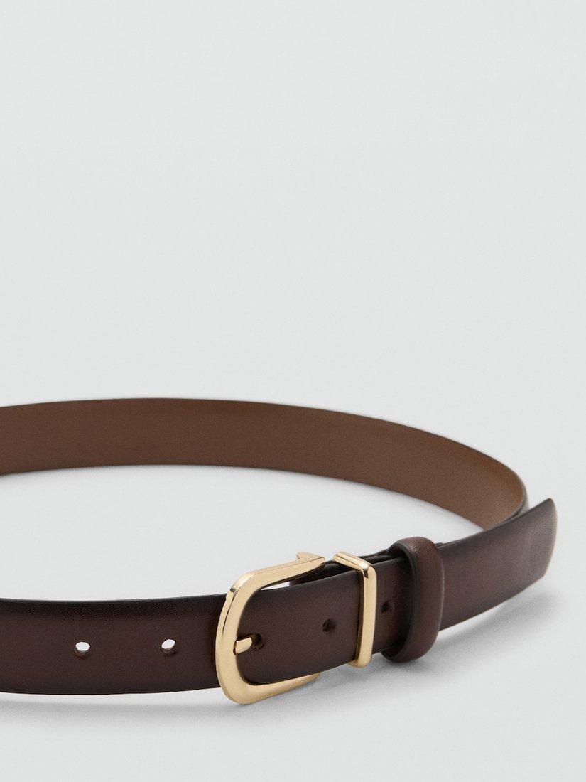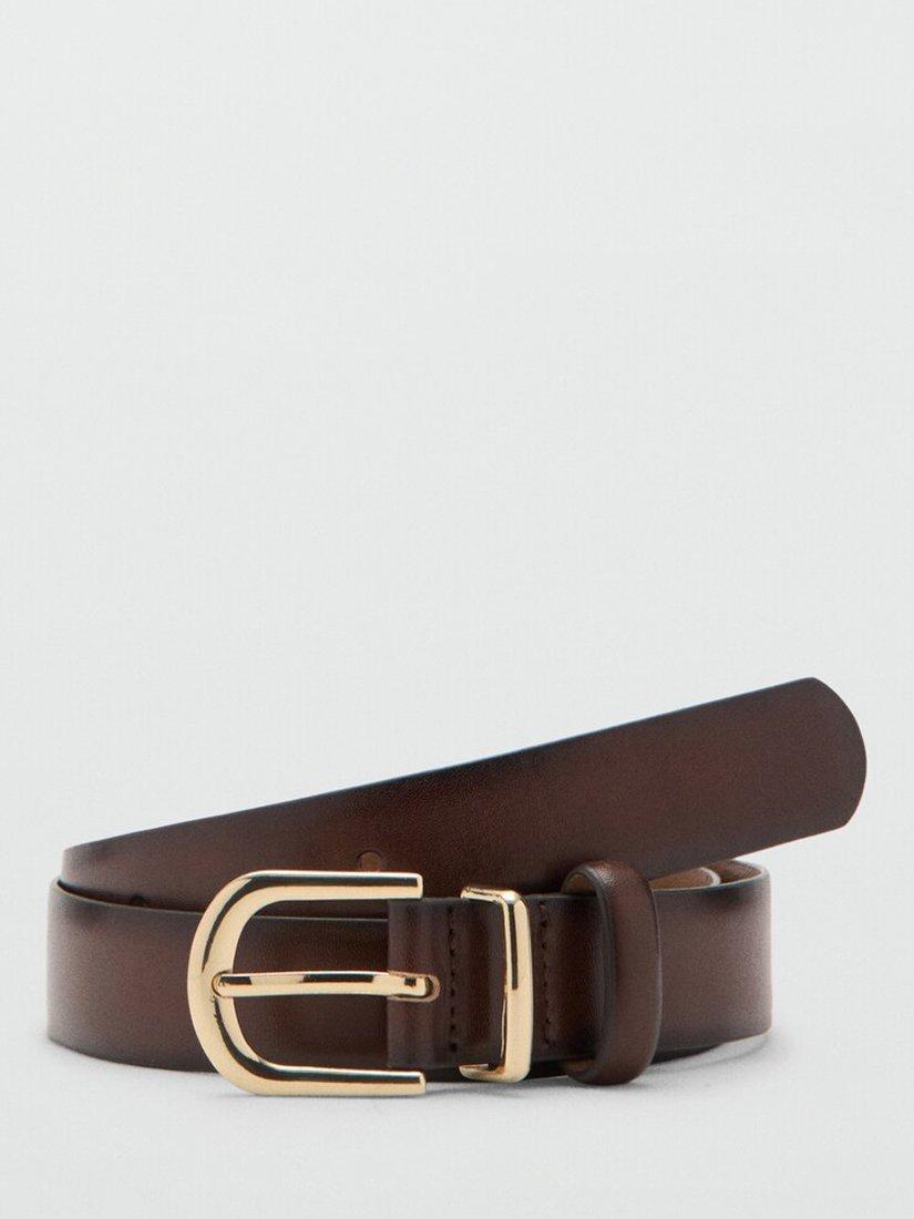 MangoRounded Buckle Pure Leather Belt, Chocolate