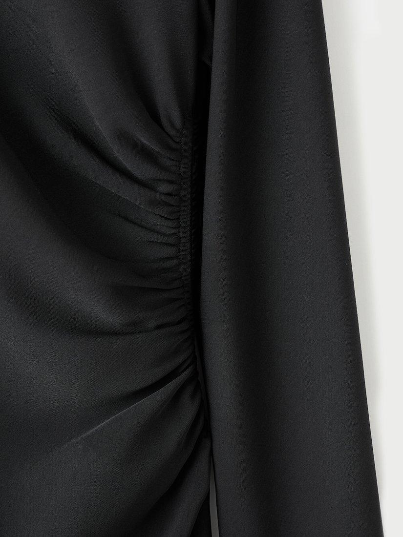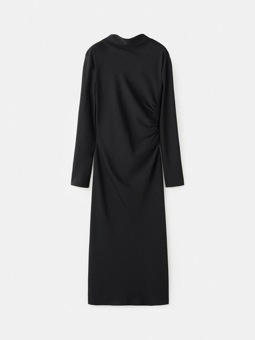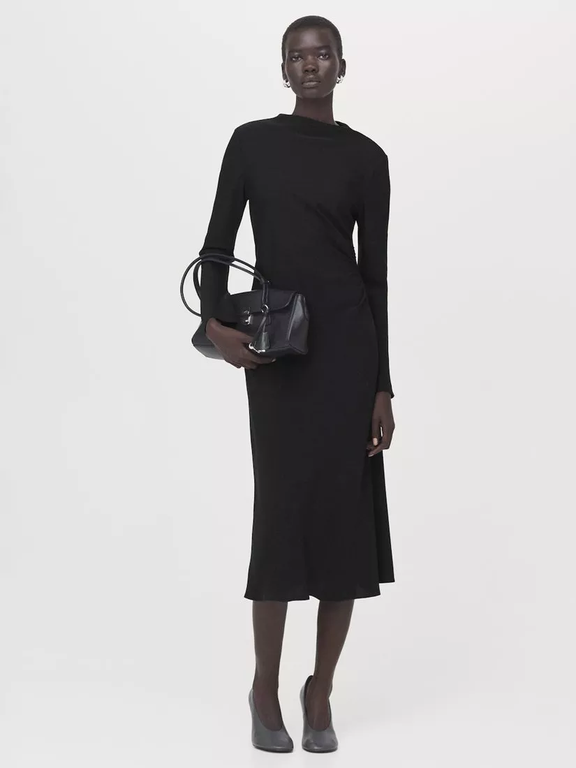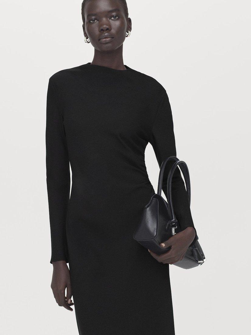 Featuring a slash round neckline and full-length sleeves, this midi dress by Mango is carved into a simple sheath silhouette with side ruching.