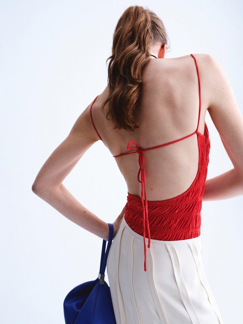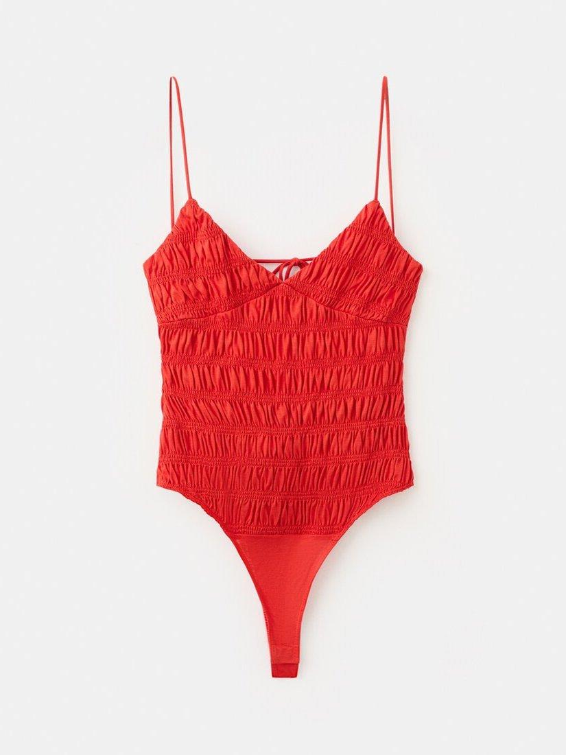 With a V-neckline and delicate spaghetti straps, this lyocell bodysuit delivers easy summer style. The ruched finish gives the textured fabric a tactile twist, while the fitted silhouette keeps movement comfortable all day.