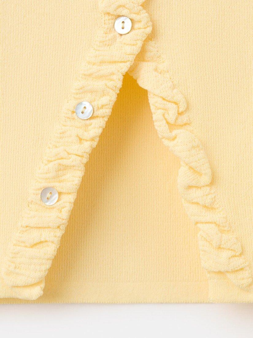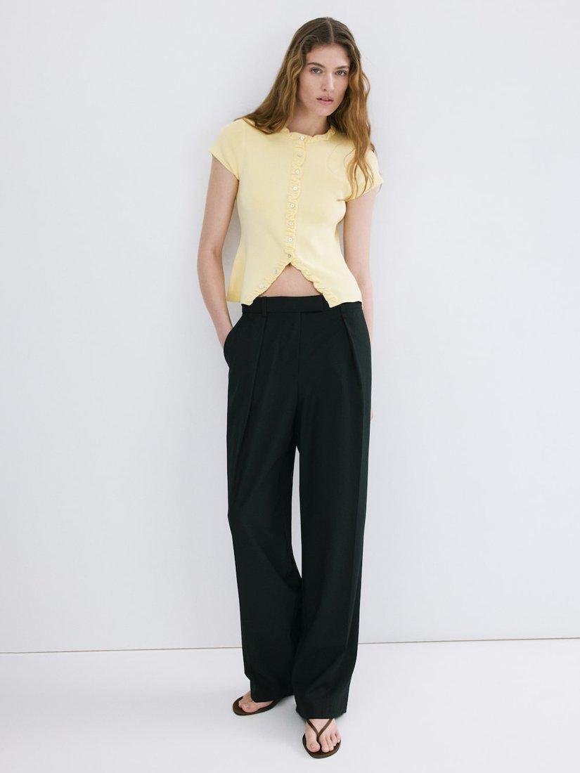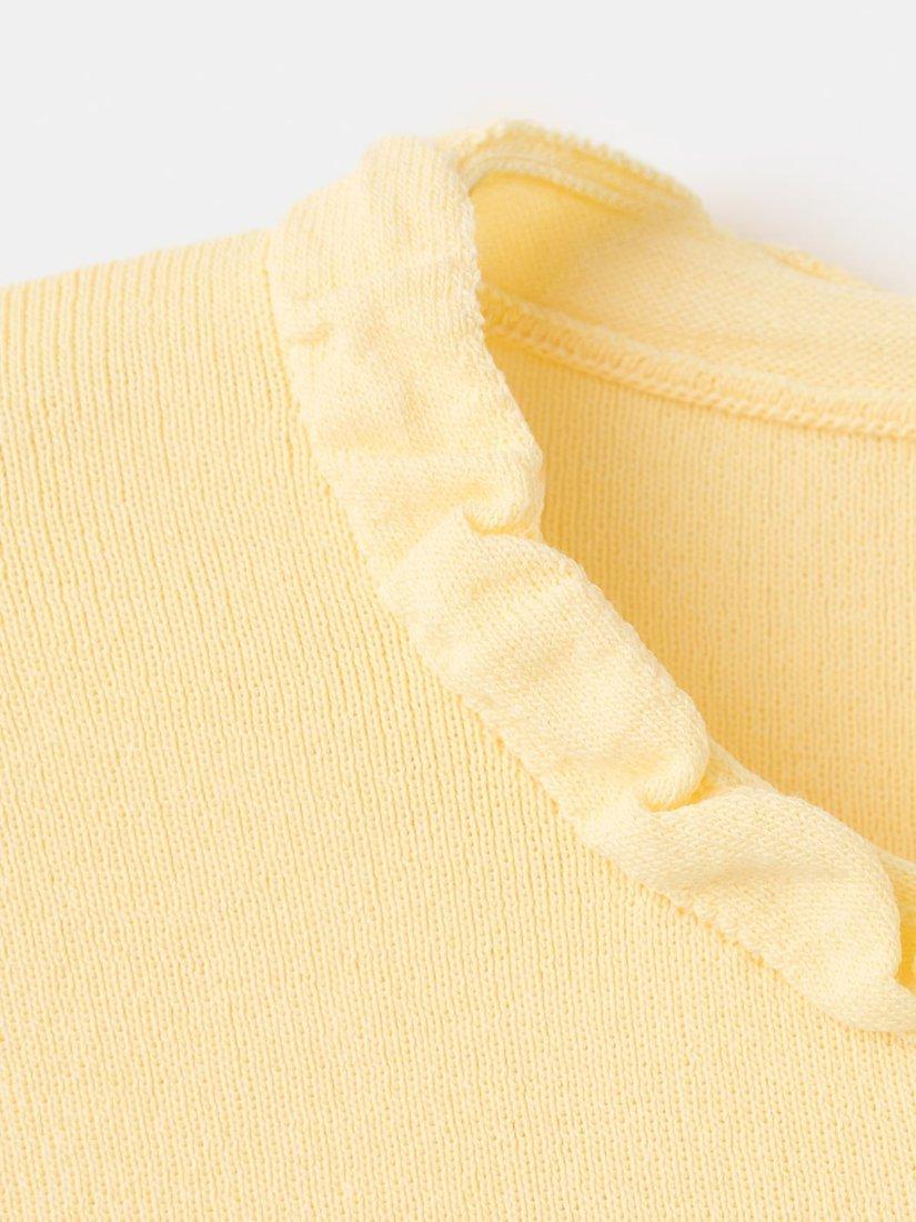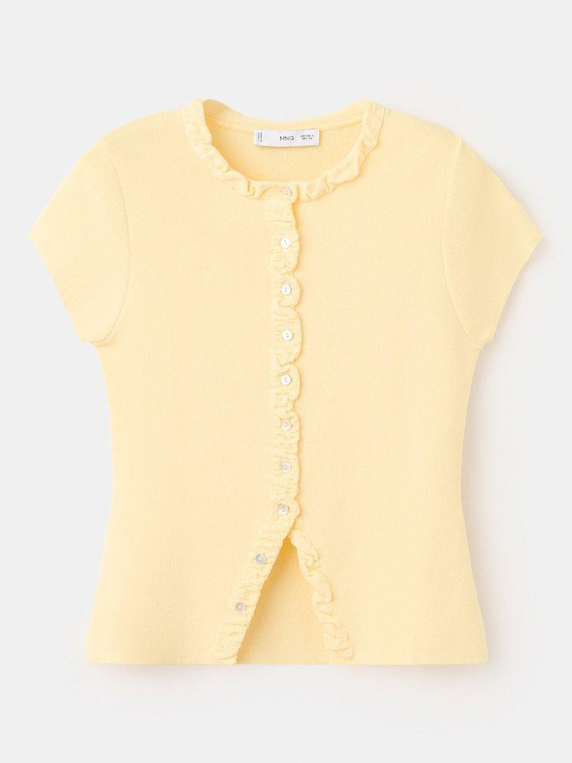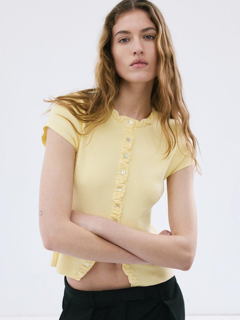 This ruffled fine-knit jumper gives a soft, lightweight feel with a round neckline, short sleeves and a cropped hem. Designed to slip easily into your everyday wardrobe, it balances comfort and refined simplicity for versatile, effortless wear.