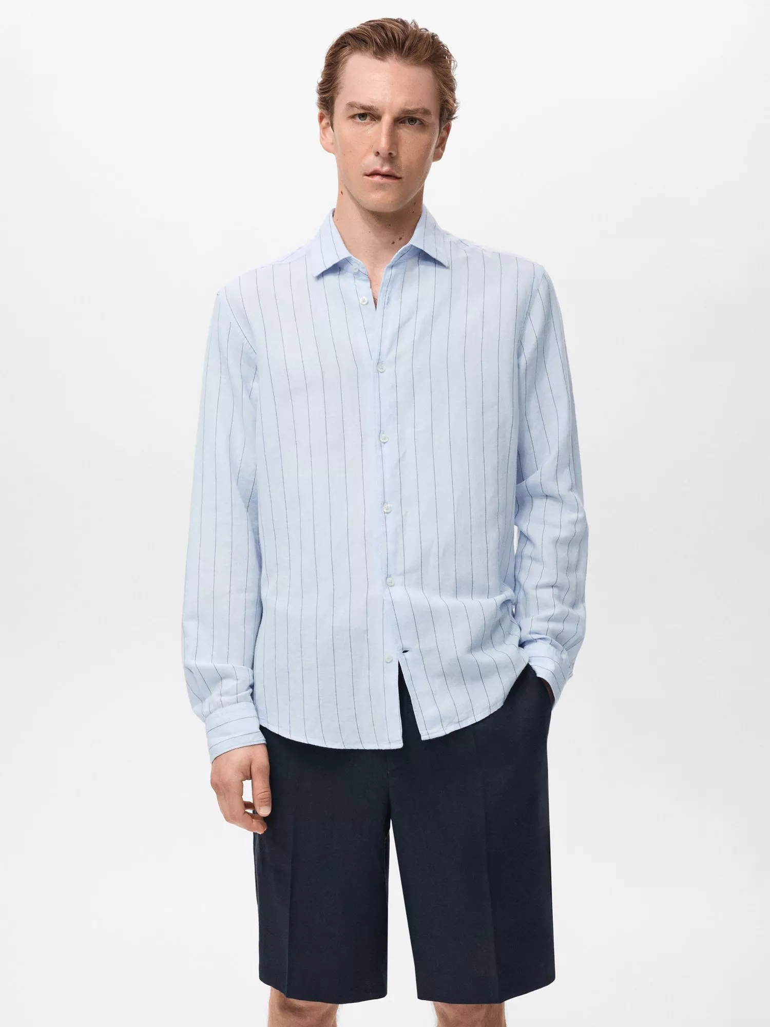 This regular-fit striped shirt combines soft linen blend comfort with crisp cotton. Its long sleeves and classic collar make it ideal for easy layering.