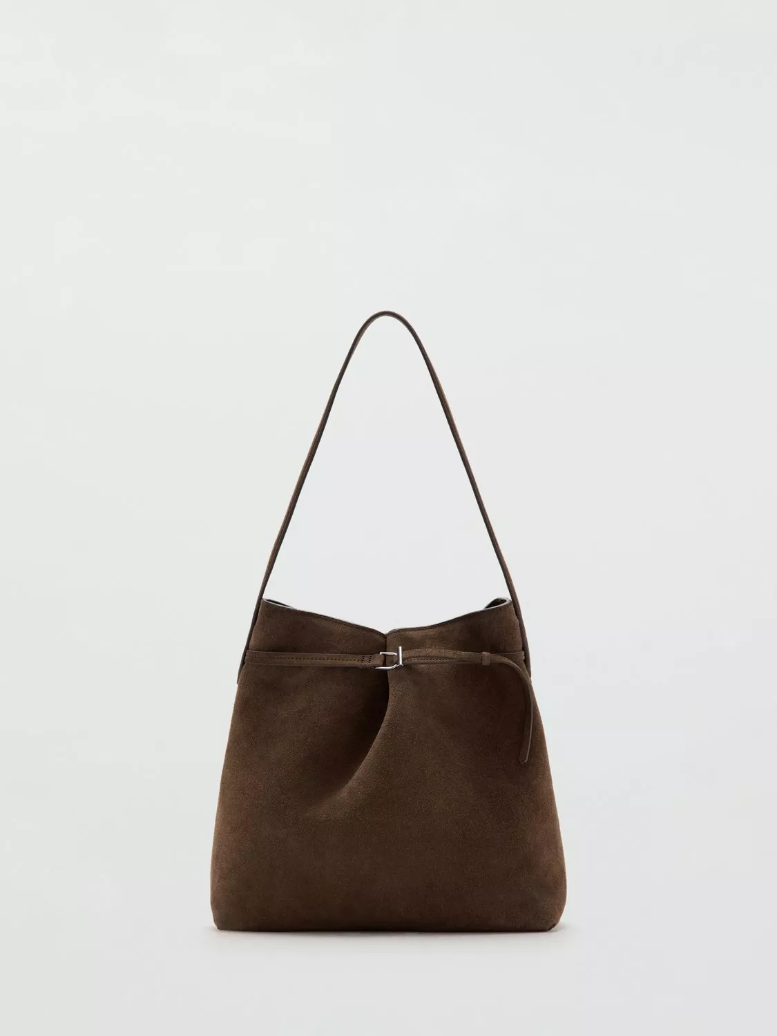 This bucket bag in smooth suede keeps your essentials organised while adding a fresh twist to your daily routine. Its popper fastening offers easy access, making every outing just that bit simpler.