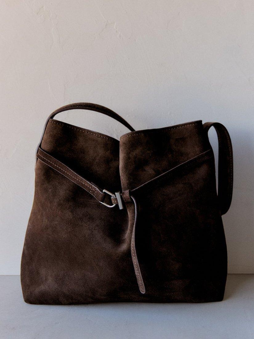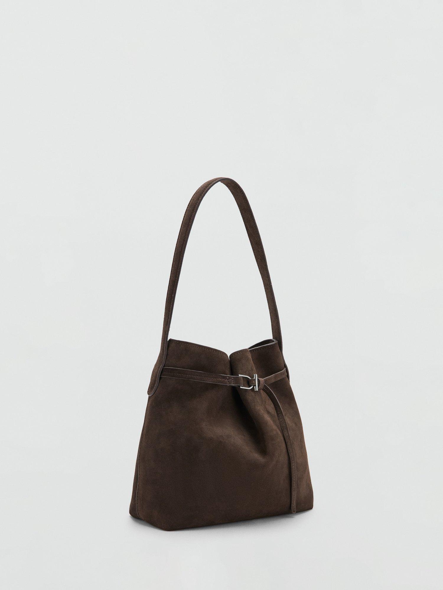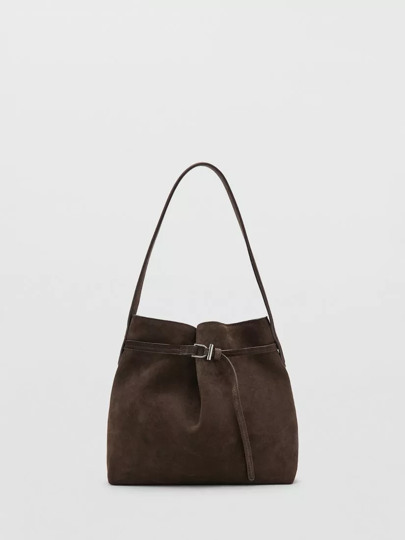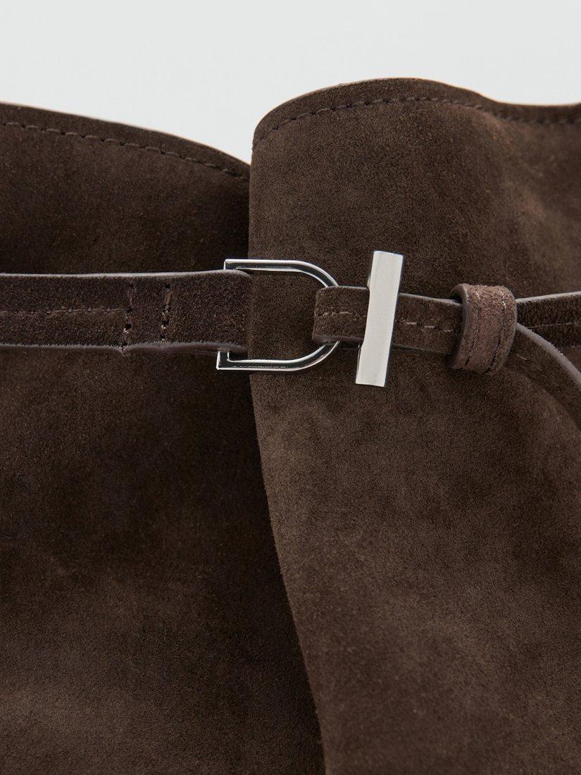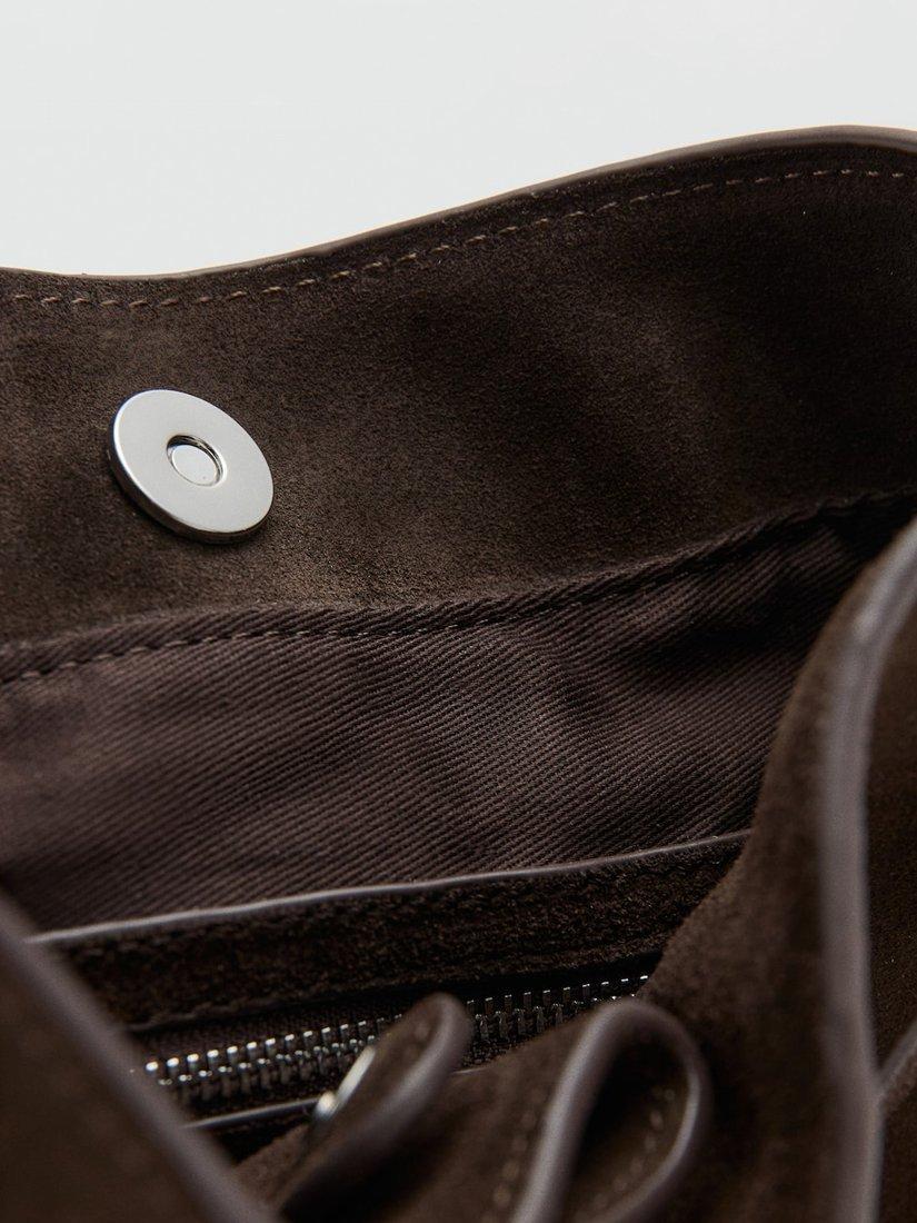 This Mango bucket bag fits everything you need and keeps things organised with its practical popper fastening. Soft suede and a cotton lining offer comfort and durability for your daily adventures.