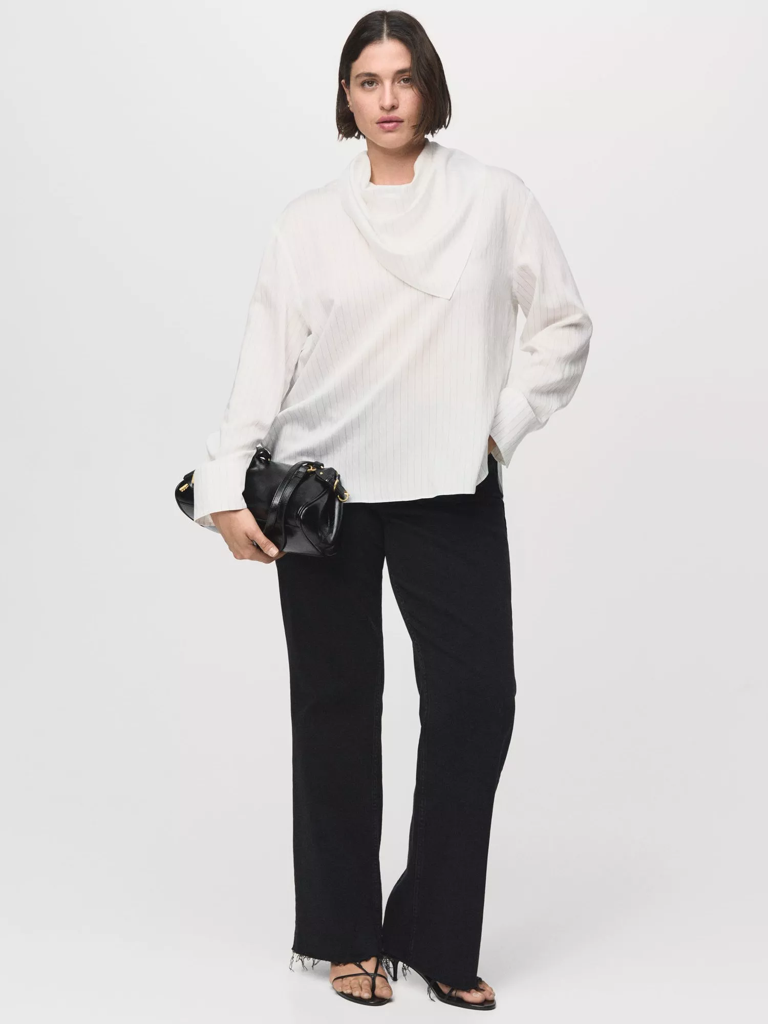 This blouse features an asymmetric scarf neck and subtle stripes, bringing a fresh twist to your everyday look. Soft to the touch and easy to wear, it adapts effortlessly from meetings to relaxed outings.