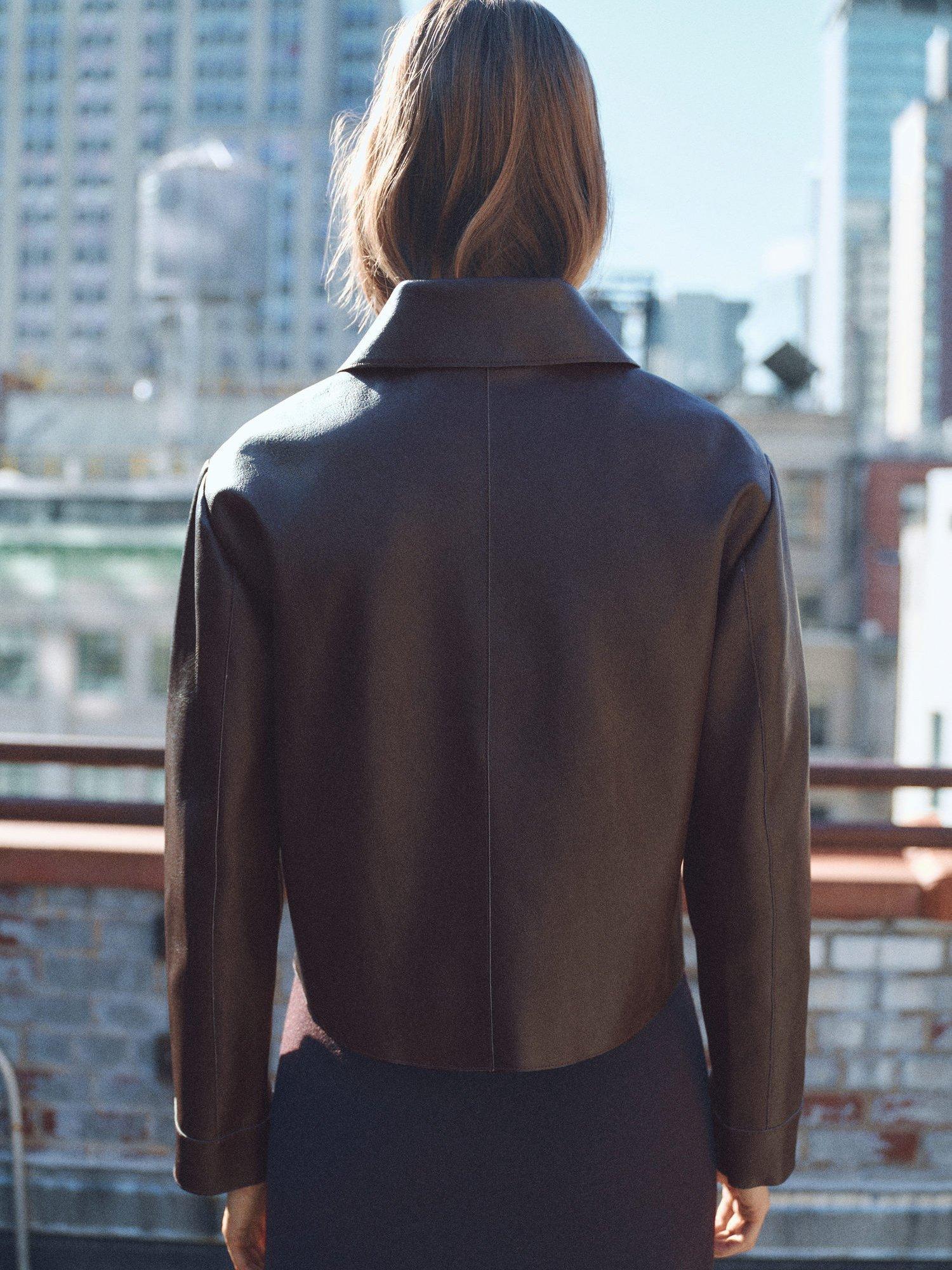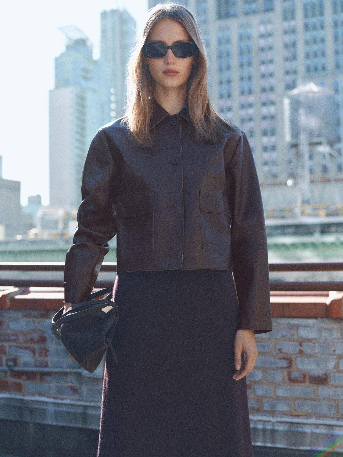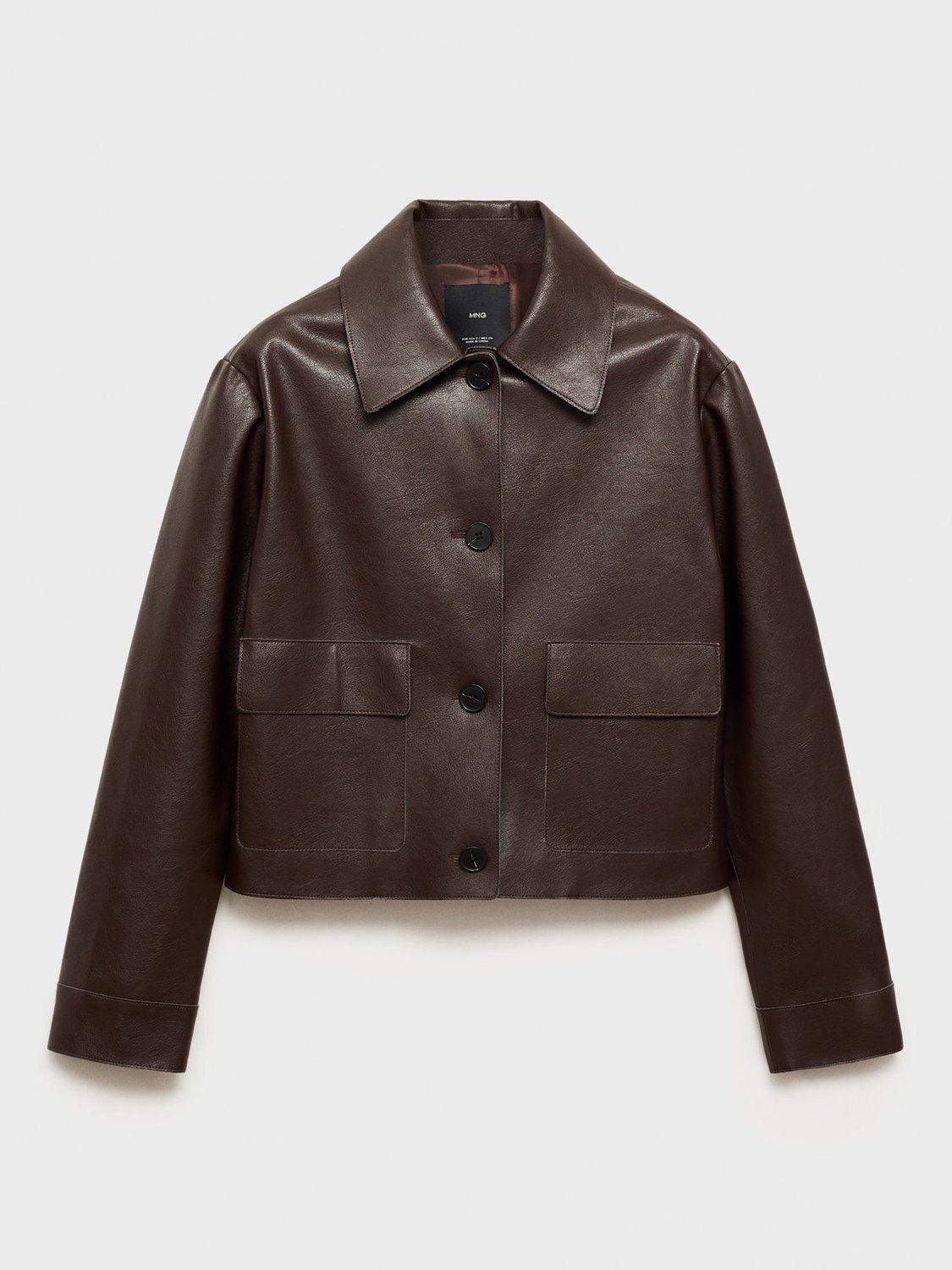 Begging to be worn again and again, this style by Mango is made in smooth faux leather with clean lines. Featuring a collar neck and a cropped hem, it buttons up through the front.