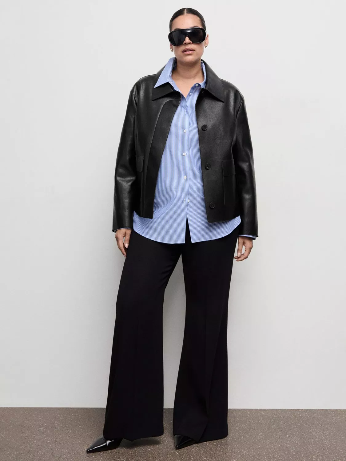 MangoSabina Faux Leather Jacket, Black