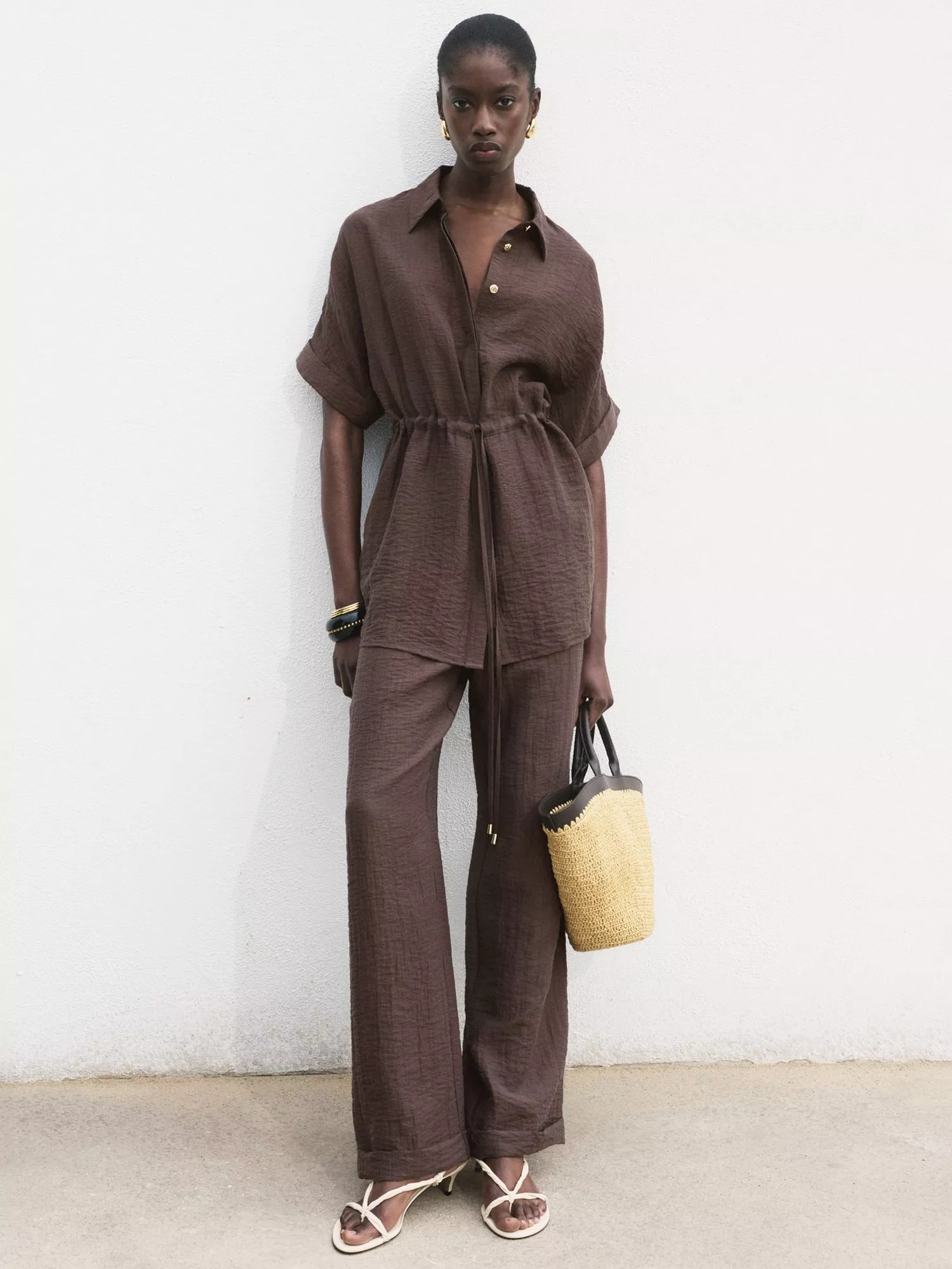 With a button fastening and collar offering a smart finish, this shirt features short sleeves and a tie waist to keep you cool. It works perfectly for your busy days or laid-back summer plans.