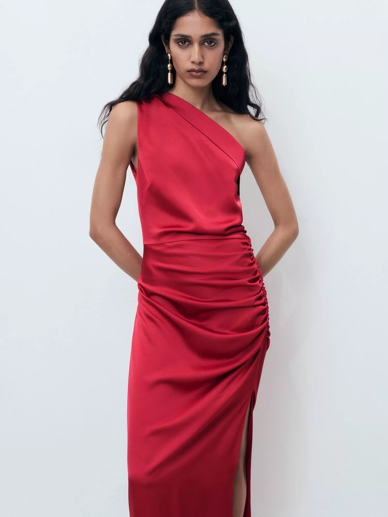 Bold in design and soft to the touch, this midi dress features an asymmetric neck silhouette, ensuring you feel confident and comfortable during summer evenings or special occasions.