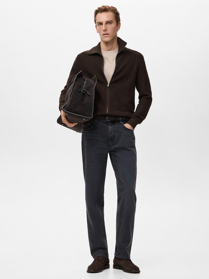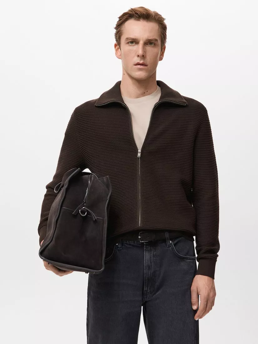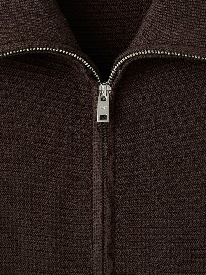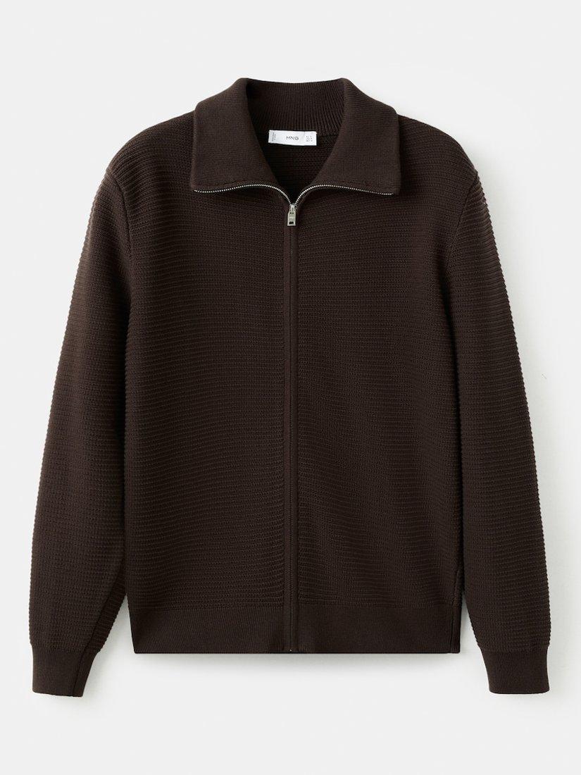 MangoSala Zip Collar Cardigan, Chocolate