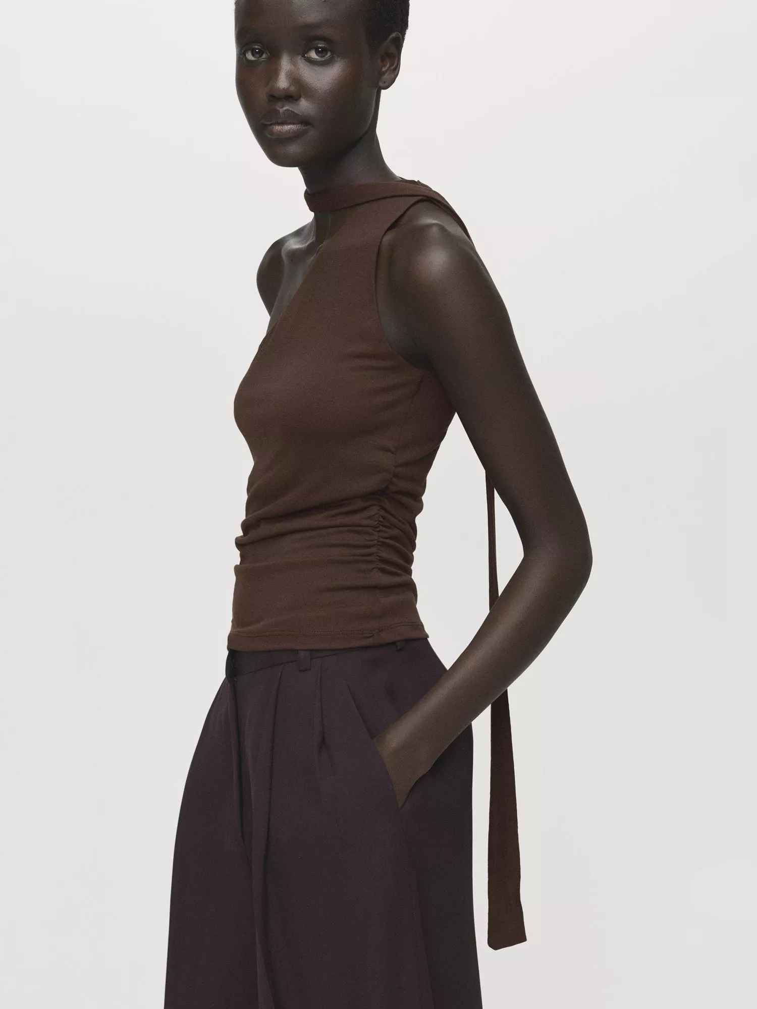 A sleeveless T-shirt by Mango, cut with an asymmetric neckline for modern edge. Made from a light yet durable fabric, it's perfect for both day plans and evening gatherings.