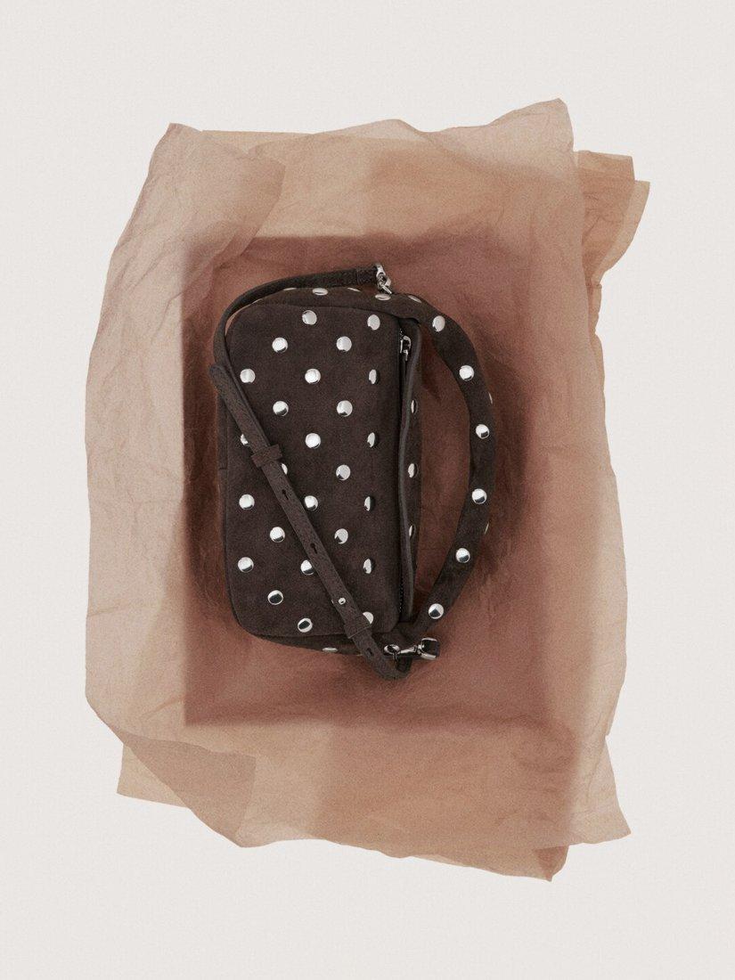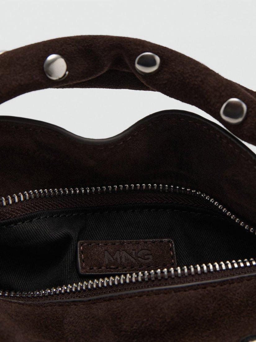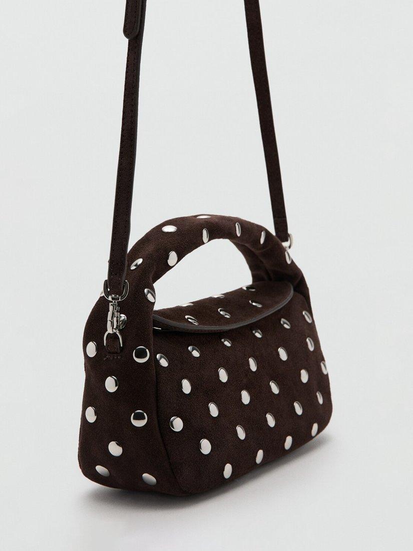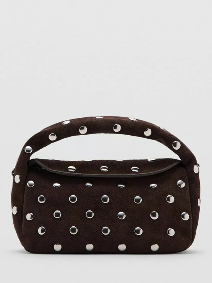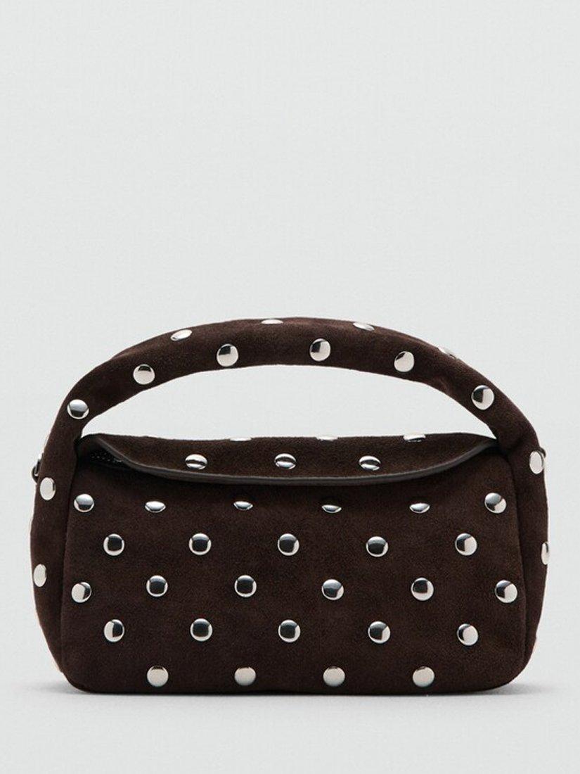 MangoSandra Suede Studded Clutch Bag, Dark Brown