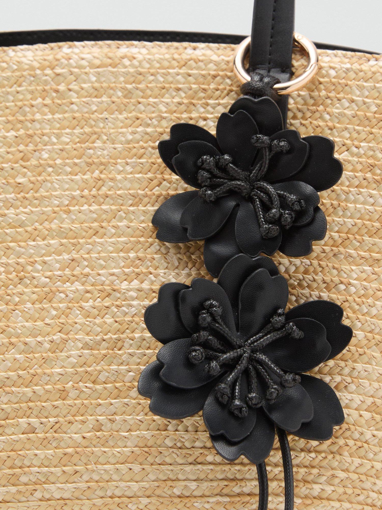 This spacious straw tote bag is capable of carrying everything you need, whether you are heading to warmer climes or simply to the local food market. The practical shape also ensures essentials remain organised, while a 3D floral embellishment adds a welcome dose of charm.