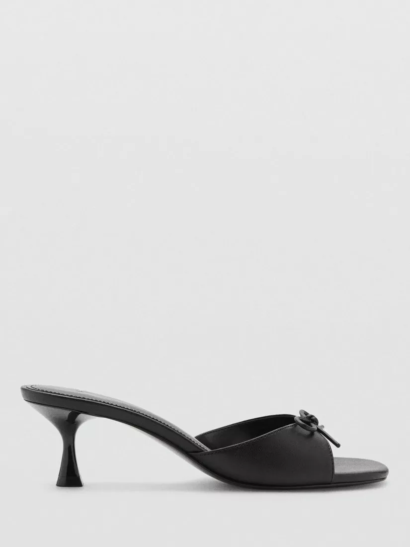 MangoSarao Bow Detail Heeled Mule Sandals, Black