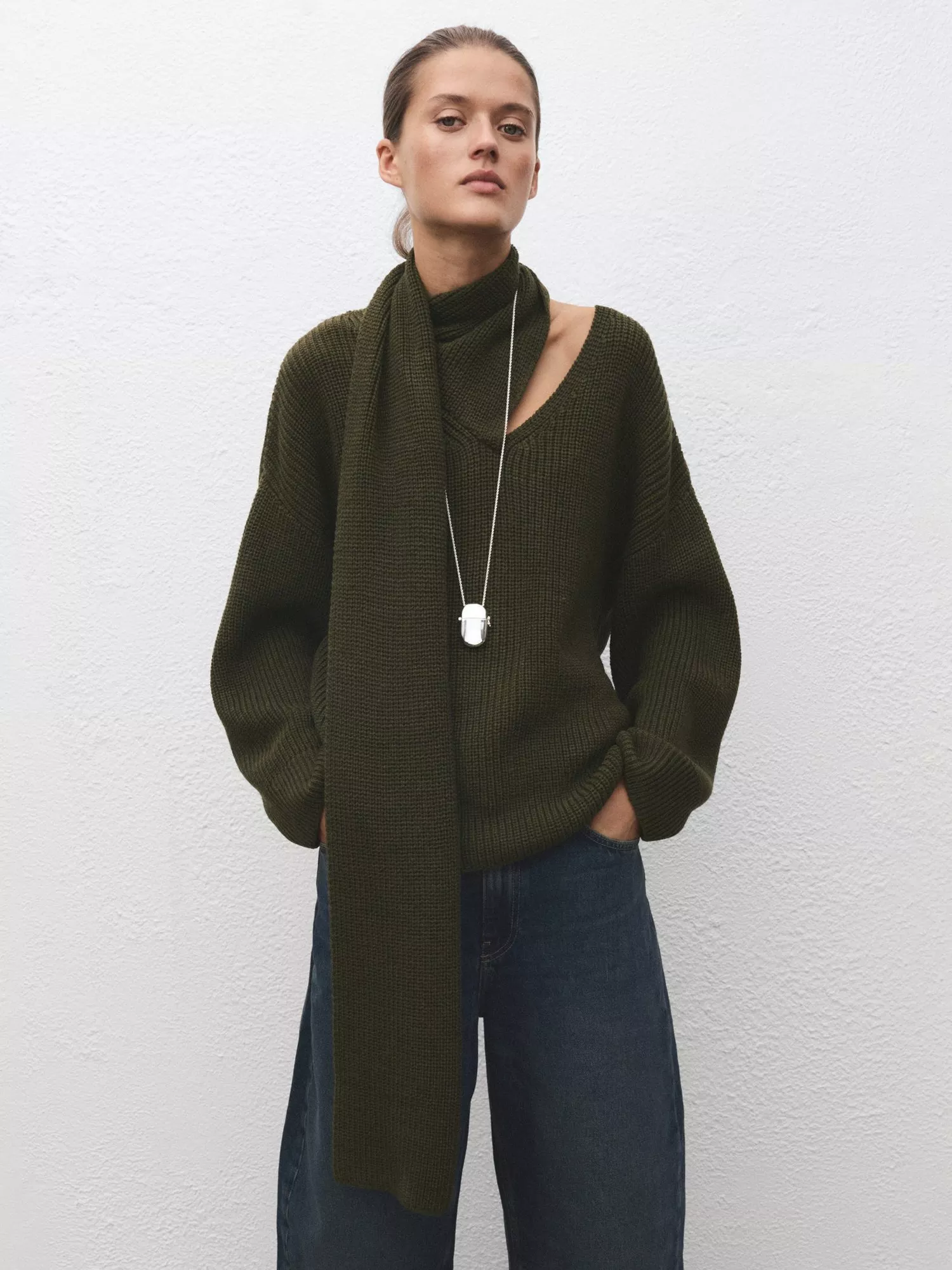 A chunky knit by Mango. The wrap over neck offers extra warmth while the relaxed fit lets you move with ease. Perfect for layering, this jumper keeps you cosy on busy days or relaxed evenings.