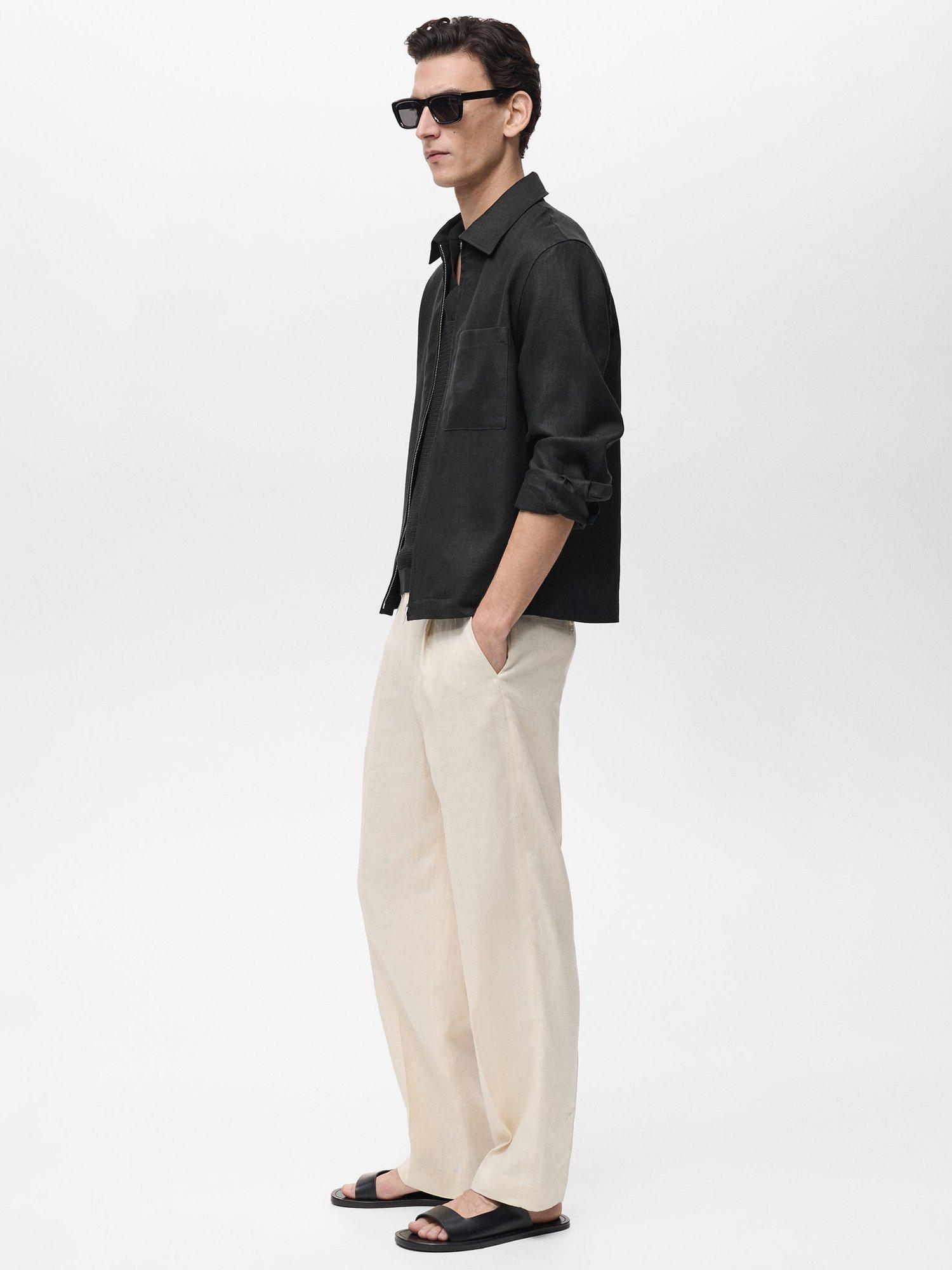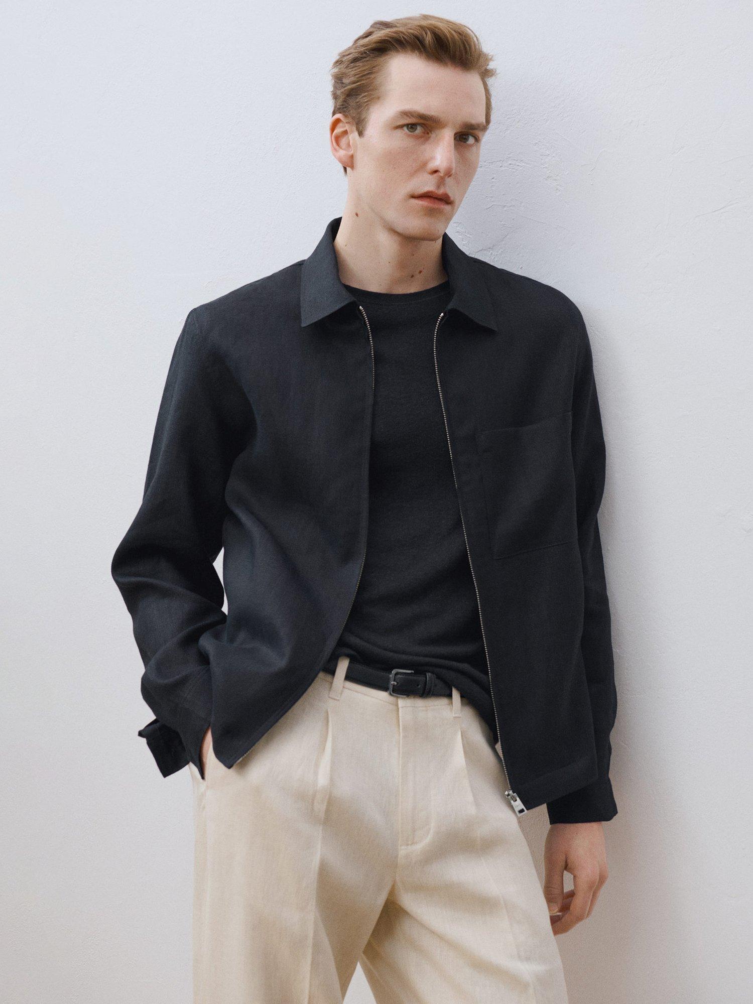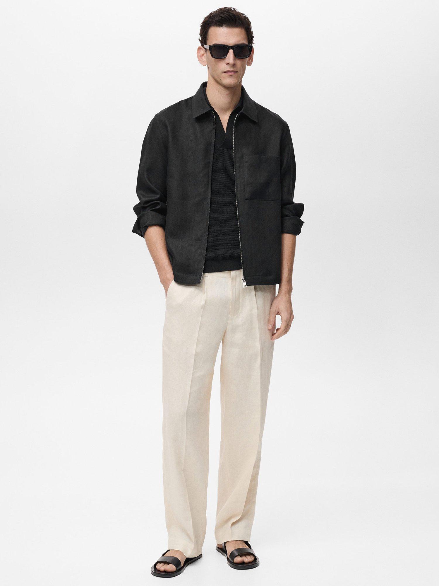 Made with pure linen in a regular fit for breathable comfort, it features pockets and a zip through the front for easy fastening.