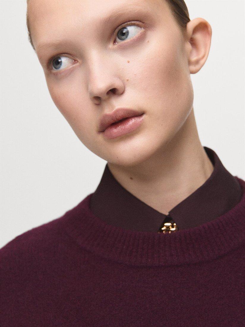 MangoSculpted Crew Neck Jumper, Garnet