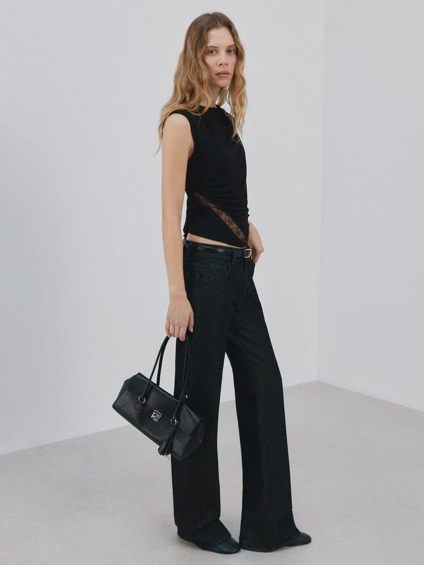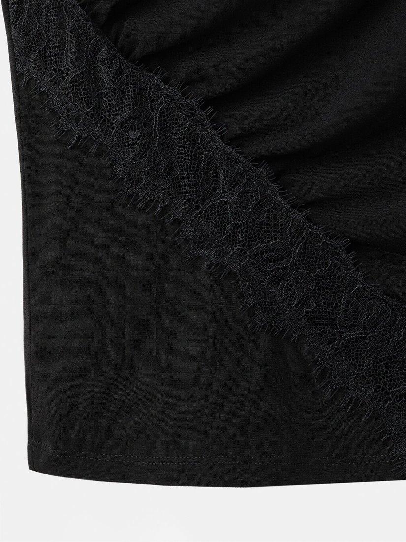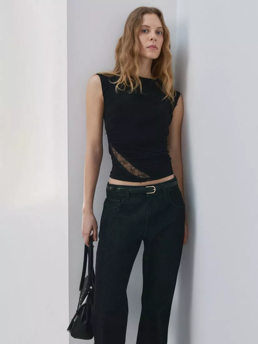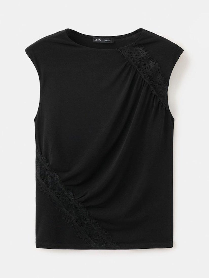 Offering a clever twist on a classic T-shirt, this sleeveless round neck top features lace inserts for an effortless fresh style.