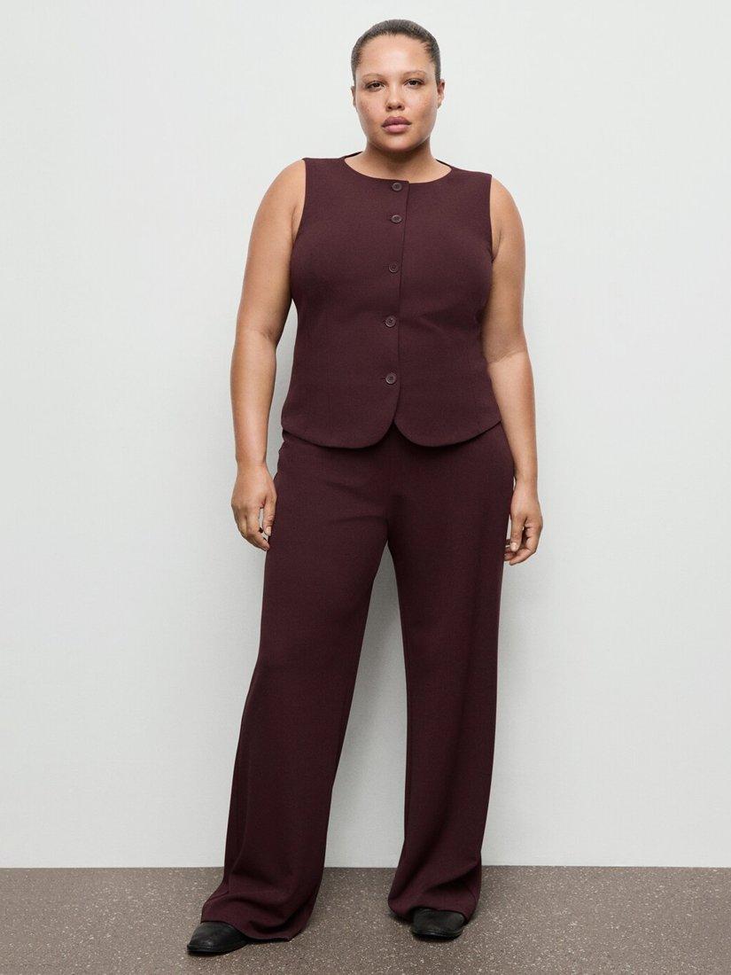 MangoSculpted Wide Leg Tailored Trousers, Bordeaux